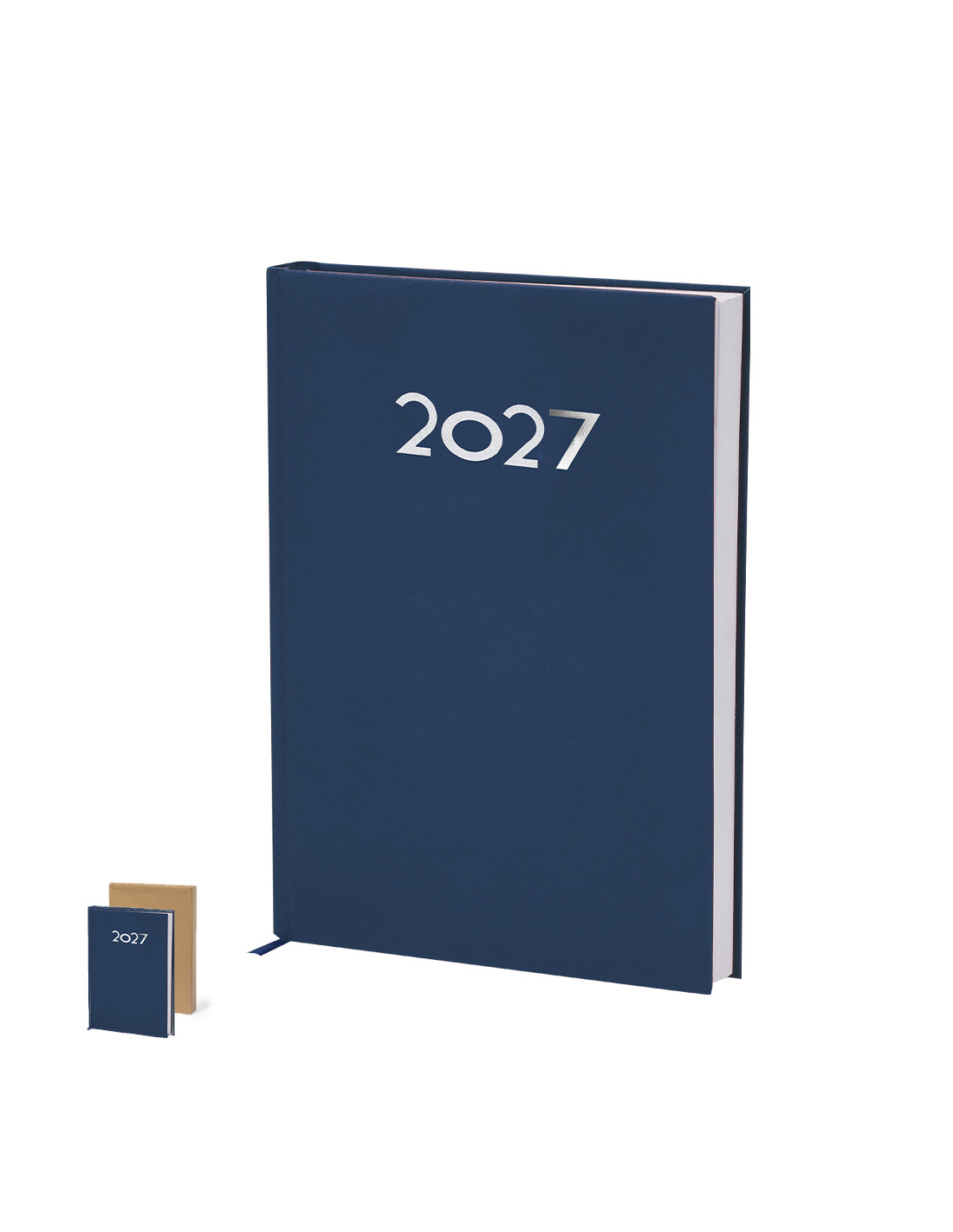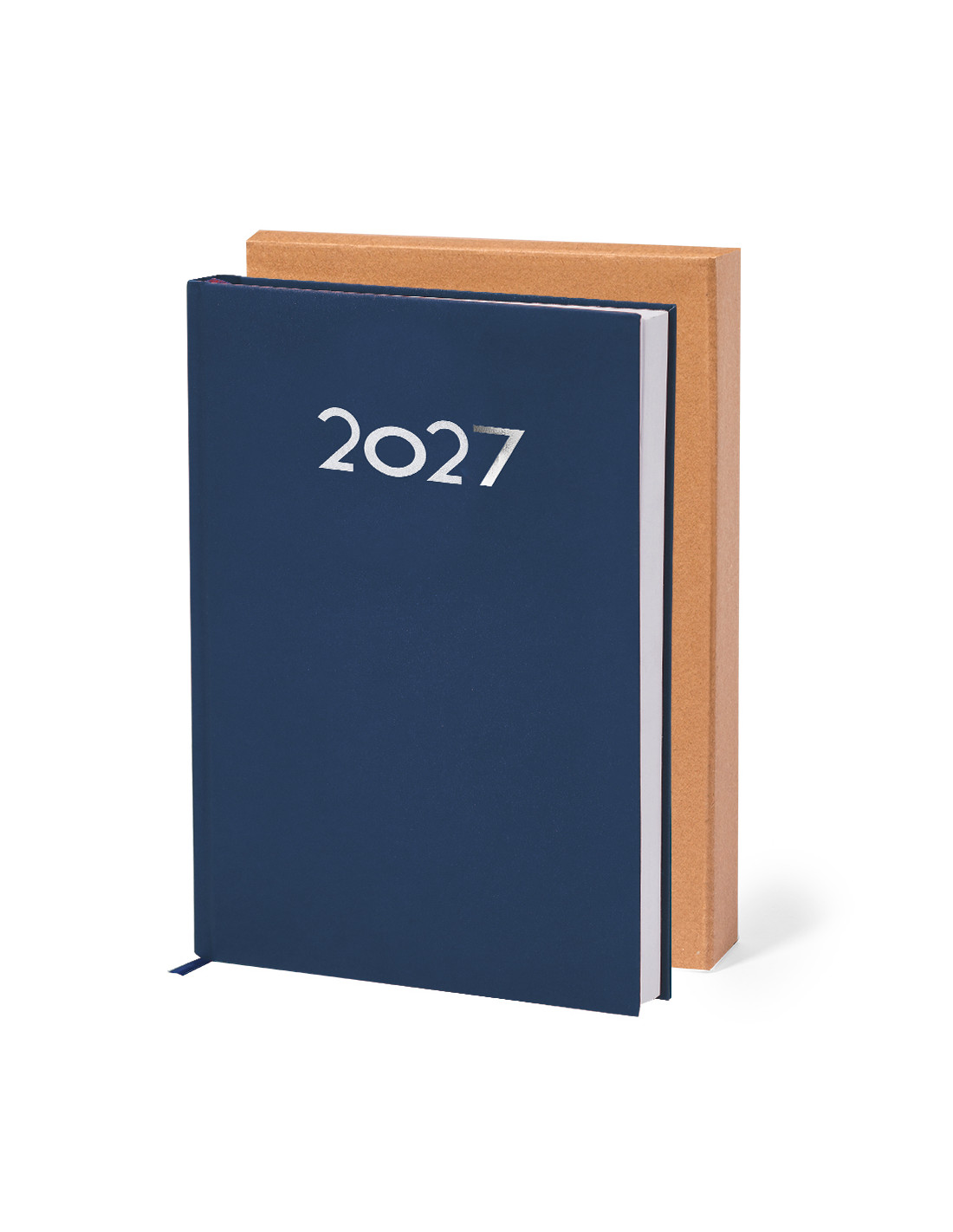 Agenda de tamaño B5 acabada en suave y resistente PU. Con cubiertas rígidas. Incluye caja kraft de presentación.Diseño página día y marcapáginas de tela. En 2 idiomas: castellano e inglés.