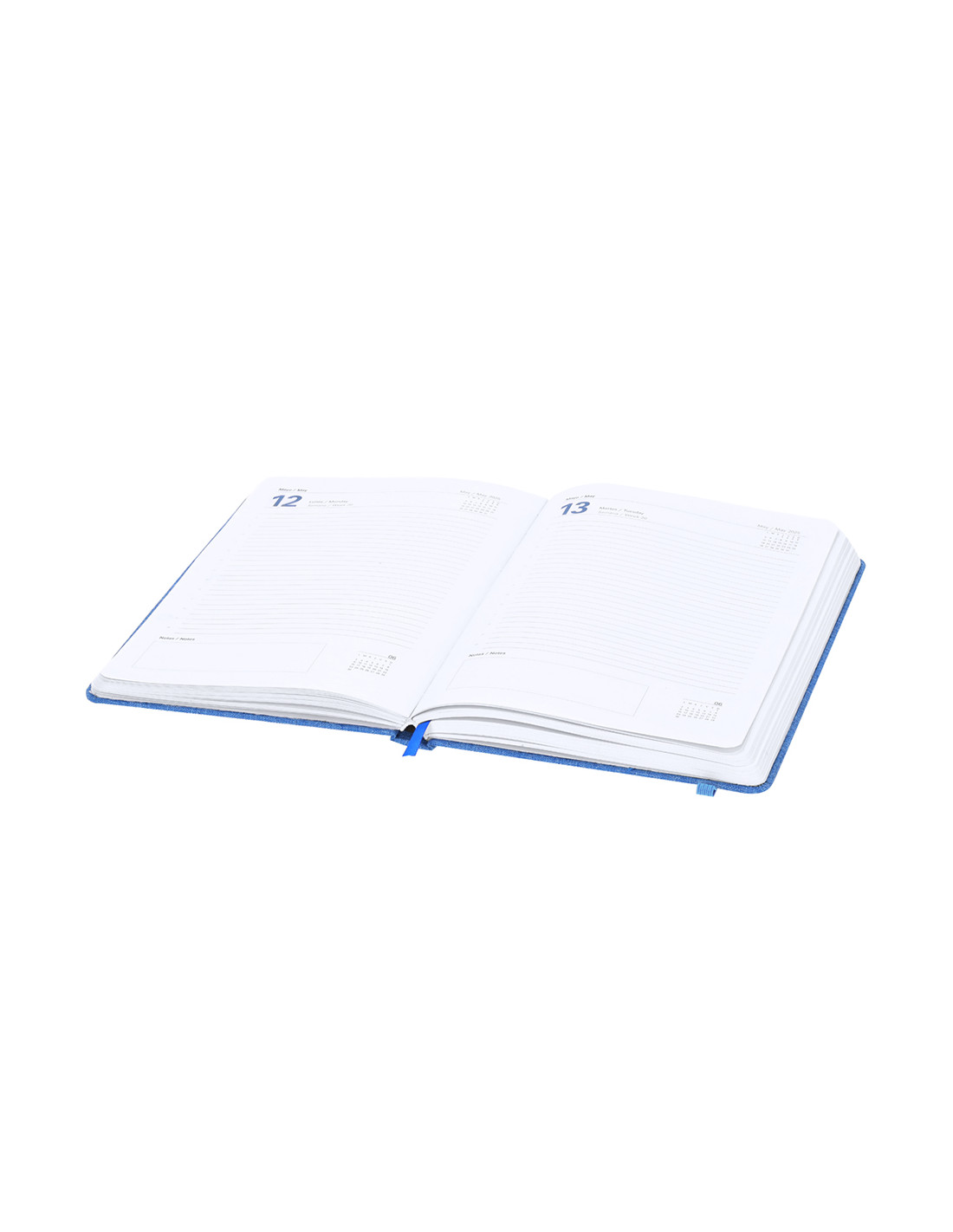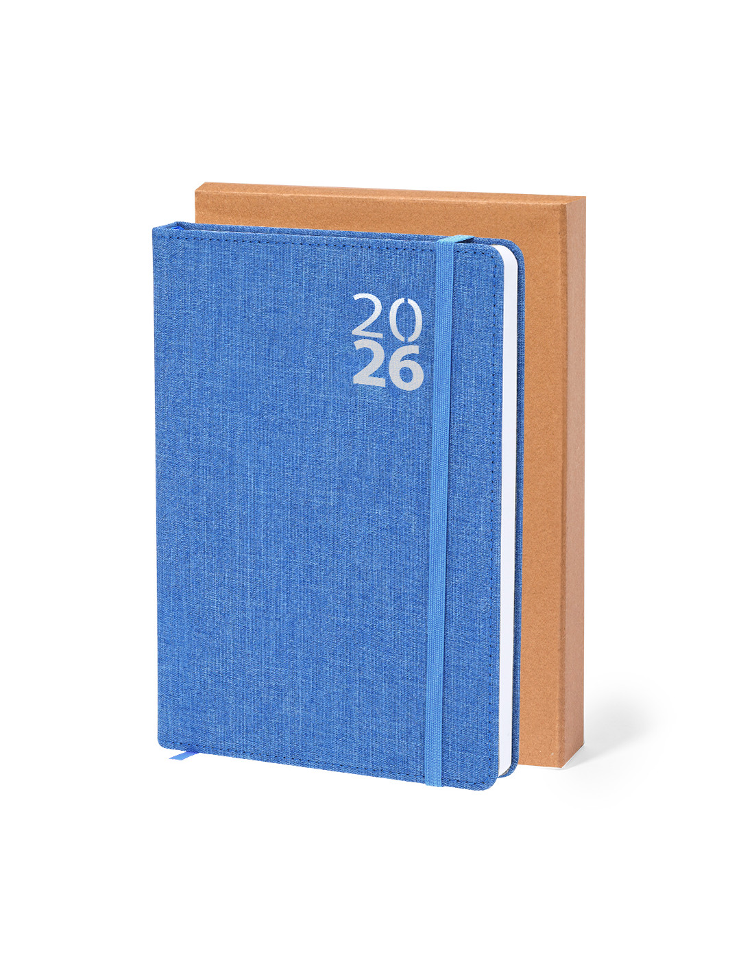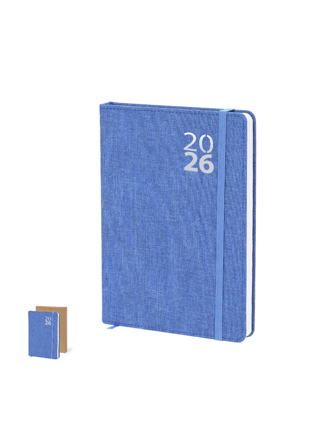 Agenda de tamaño A5 fabricada en suave poliéster RPET. Con cubiertas rígidas. Incluye caja kraft de presentación. Cuenta con distintivo RPET.Diseño página día, zona de anotaciones y marcapáginas de tela. En 2 idiomas: castellano e inglés. El material RPET se elabora a partir de plástico reciclado, para así fomentar la reutilización de residuos plásticos y ayudar a la sostenibilidad del planeta.
