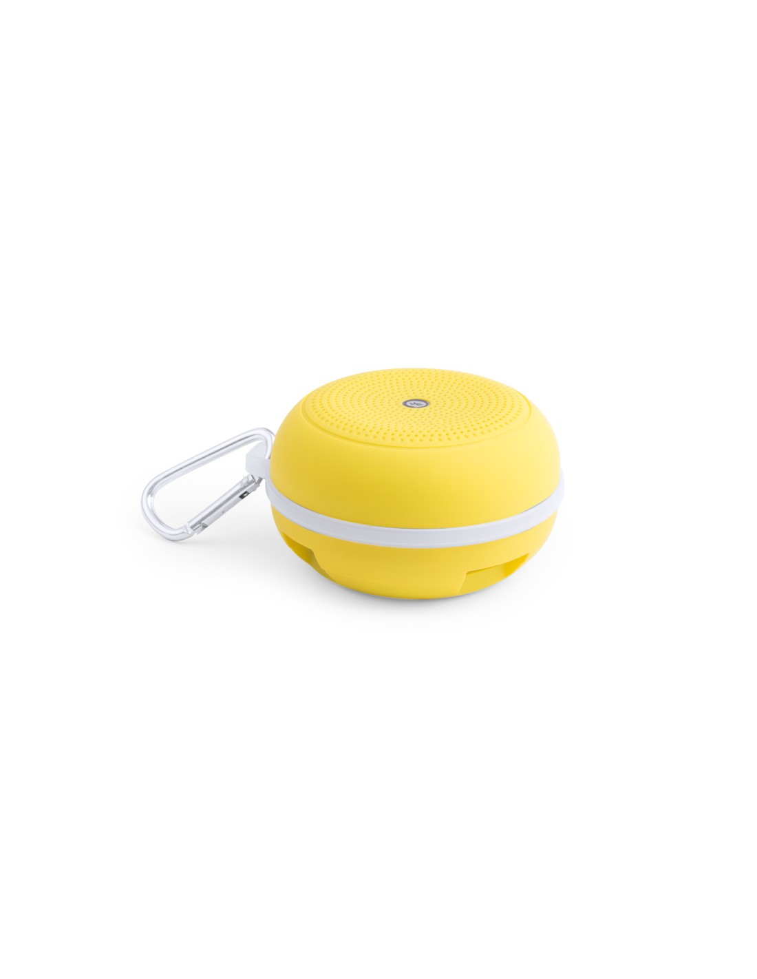 Compacto altavoz de conexión Bluetooth®. De diseño bicolor desenfadado, incluye mosquetón metálico de transporte. Con conexión Bluetooth® 3.0, ofrece 3W de potencia, tiene función de manos libres, una ranura para tarjetas mini SD de hasta 32 GB de capacidad, función radio FM, entrada auxiliar de línea mediante conexión jack de 3,5mm y soportes de goma antideslizantes en la base. Compatible con iOS y Android, incluye cable de carga mini USB, cable auxiliar jack de 3,5mm y viene present
