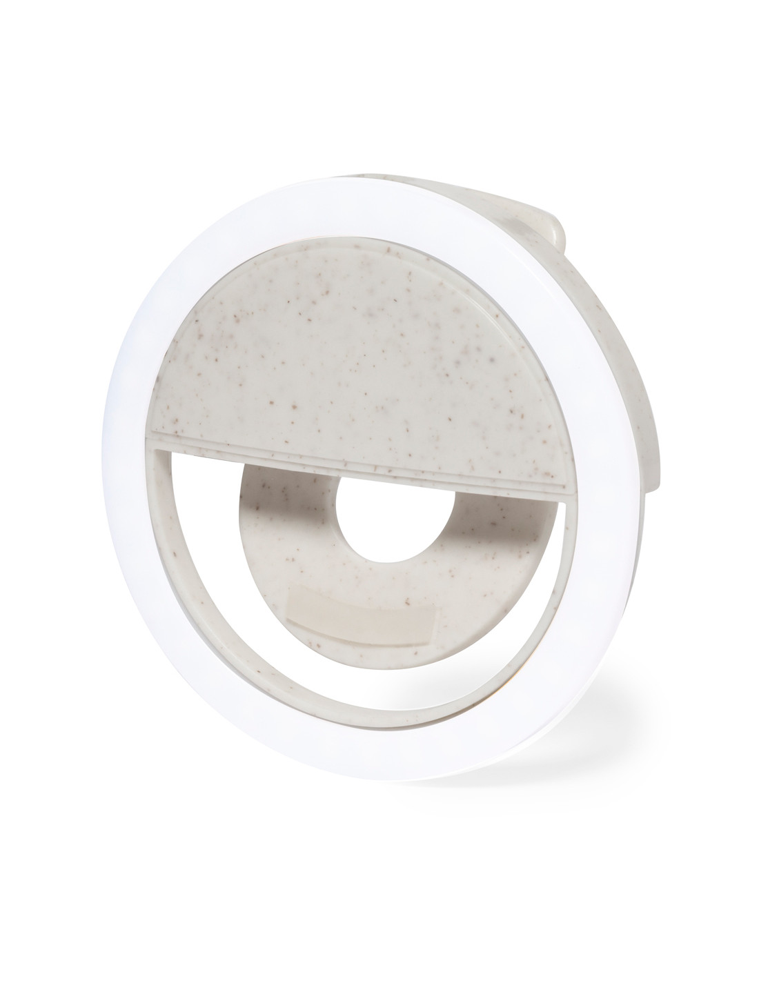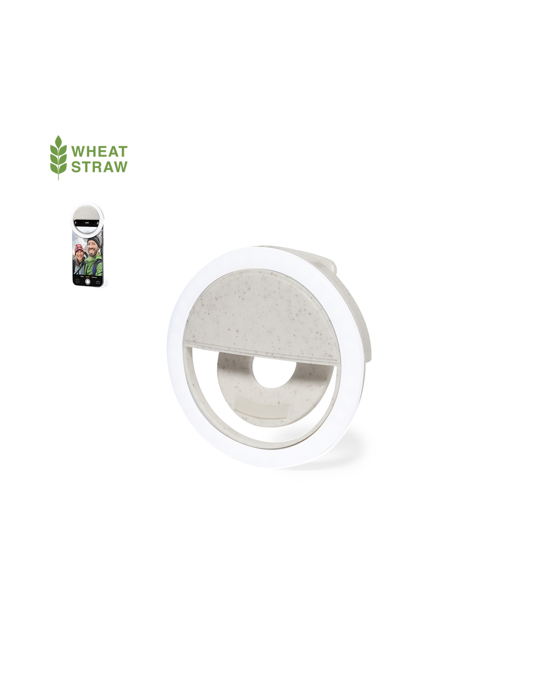 Anillo de luz LED para smartphone, fabricado en resistente caña de trigo. Ajustable a cualquier smartphone, con 36 LEDs y 3 niveles de intensidad de luz. Batería de 80 mAh y recargable por USB (cable Micro USB incluido). Presentado en atractiva caja de diseño, con manual de instrucciones disponible en español e inglés.La caña de trigo fomenta la utilización de materias primas naturales, reduciendo así las emisiones contaminantes.