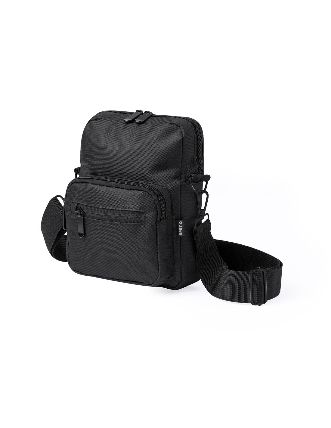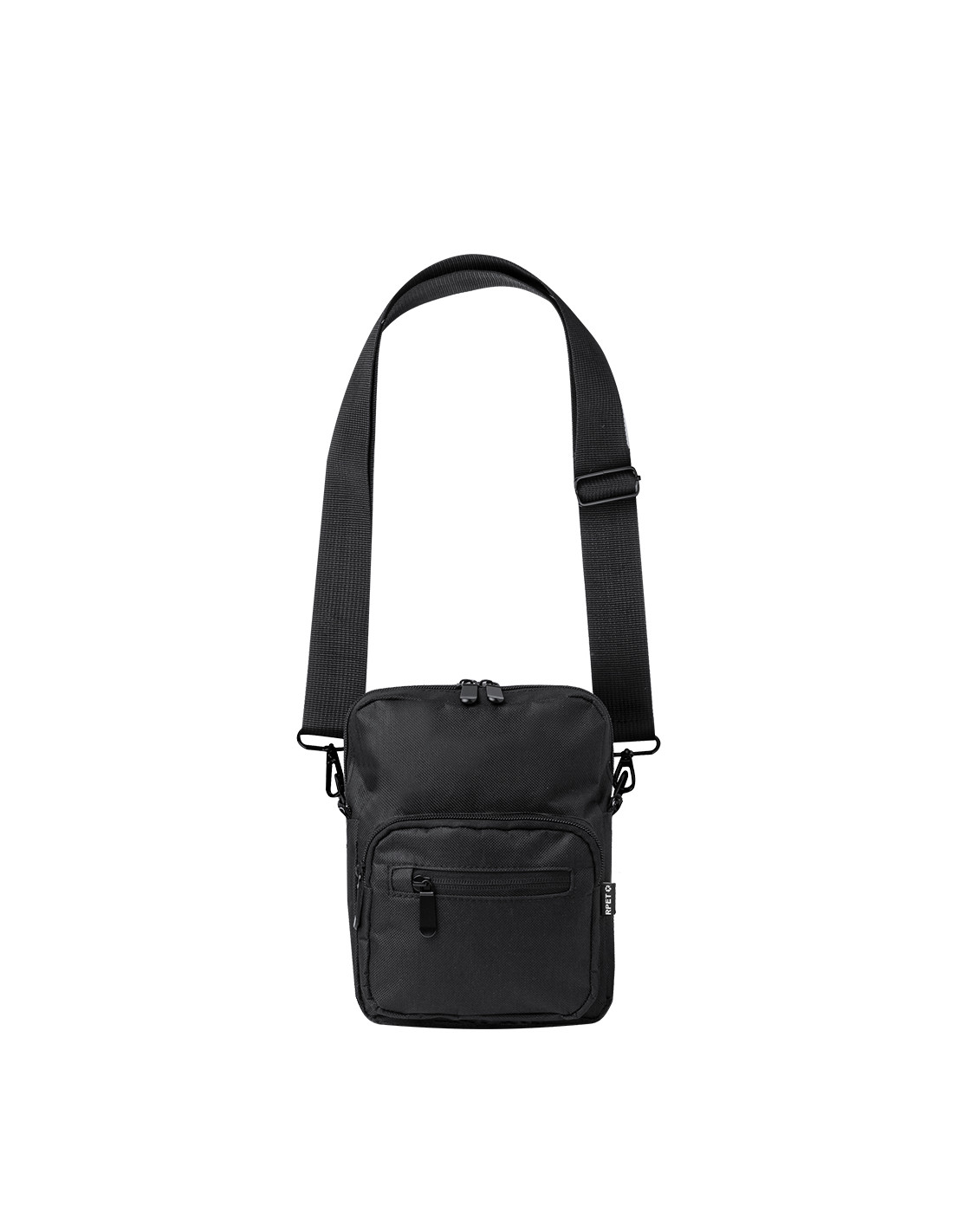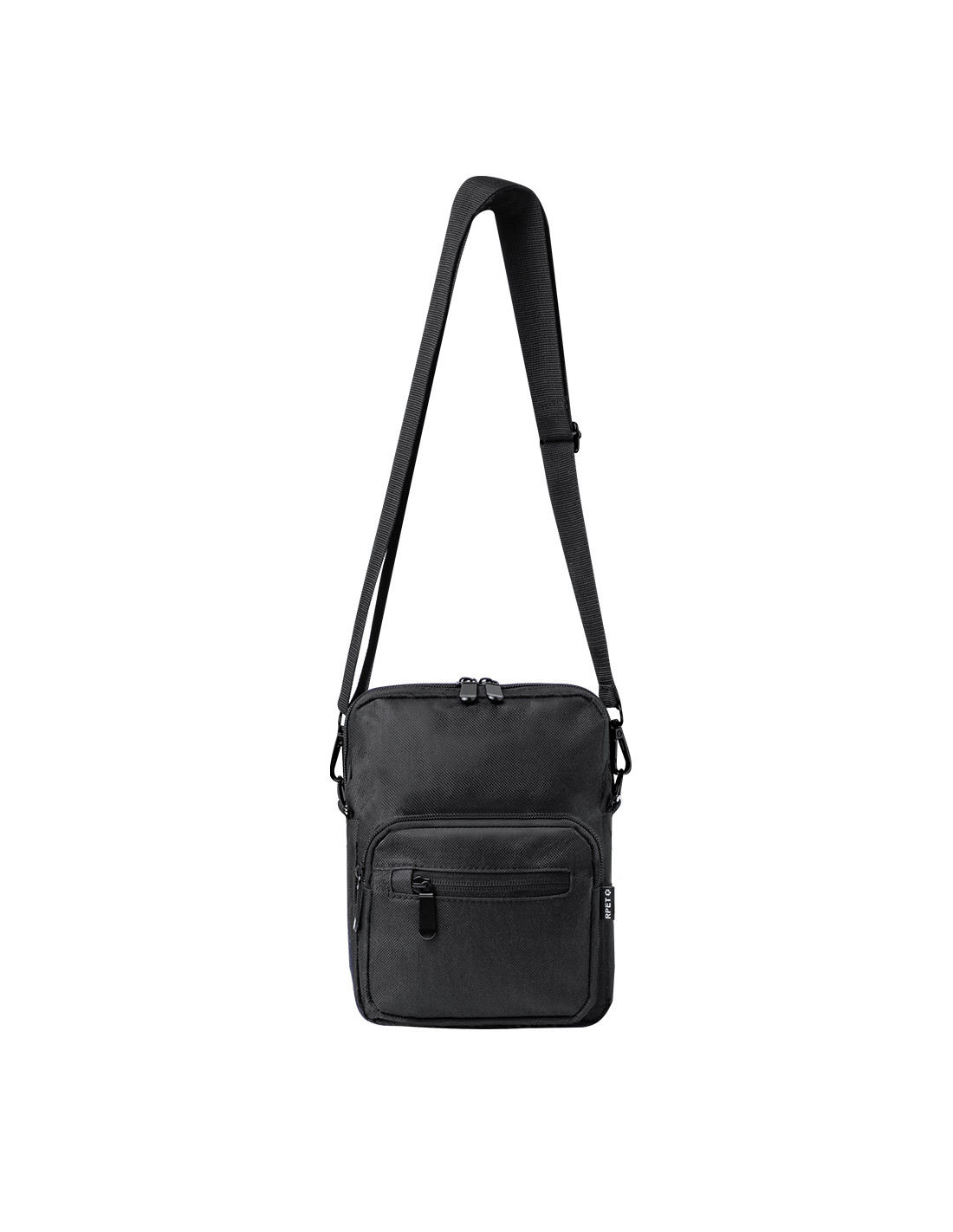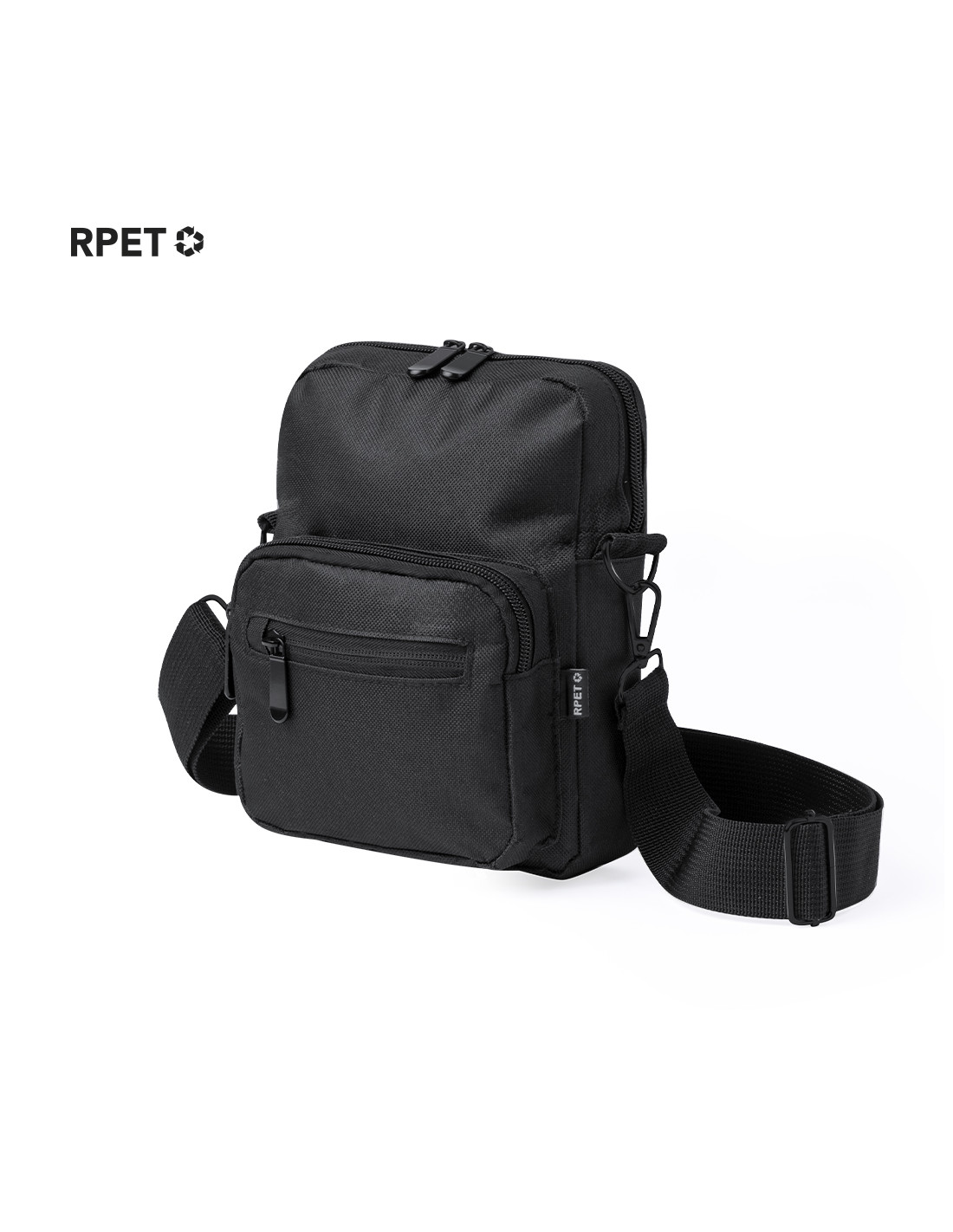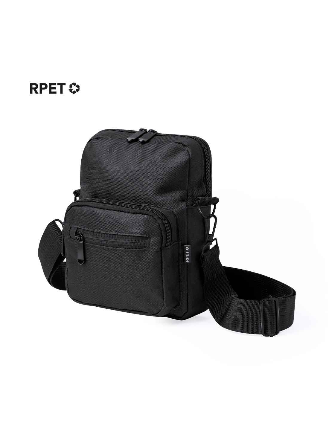 Bandolera confeccionada en poliéster RPET 600D, cuenta con un bolsillo central de cremallera, y doble tirador, con dos compartimentos frontales de rápido acceso con cierre de cremallera. Equipada con una cinta ajustable para mayor comodidad y una etiqueta distintiva de RPET. Presentada individualmente en bolsa reciclada.El material RPET se elabora a partir de plástico reciclado, para así fomentar la reutilización de residuos plásticos y ayudar a la sostenibilidad del planeta.