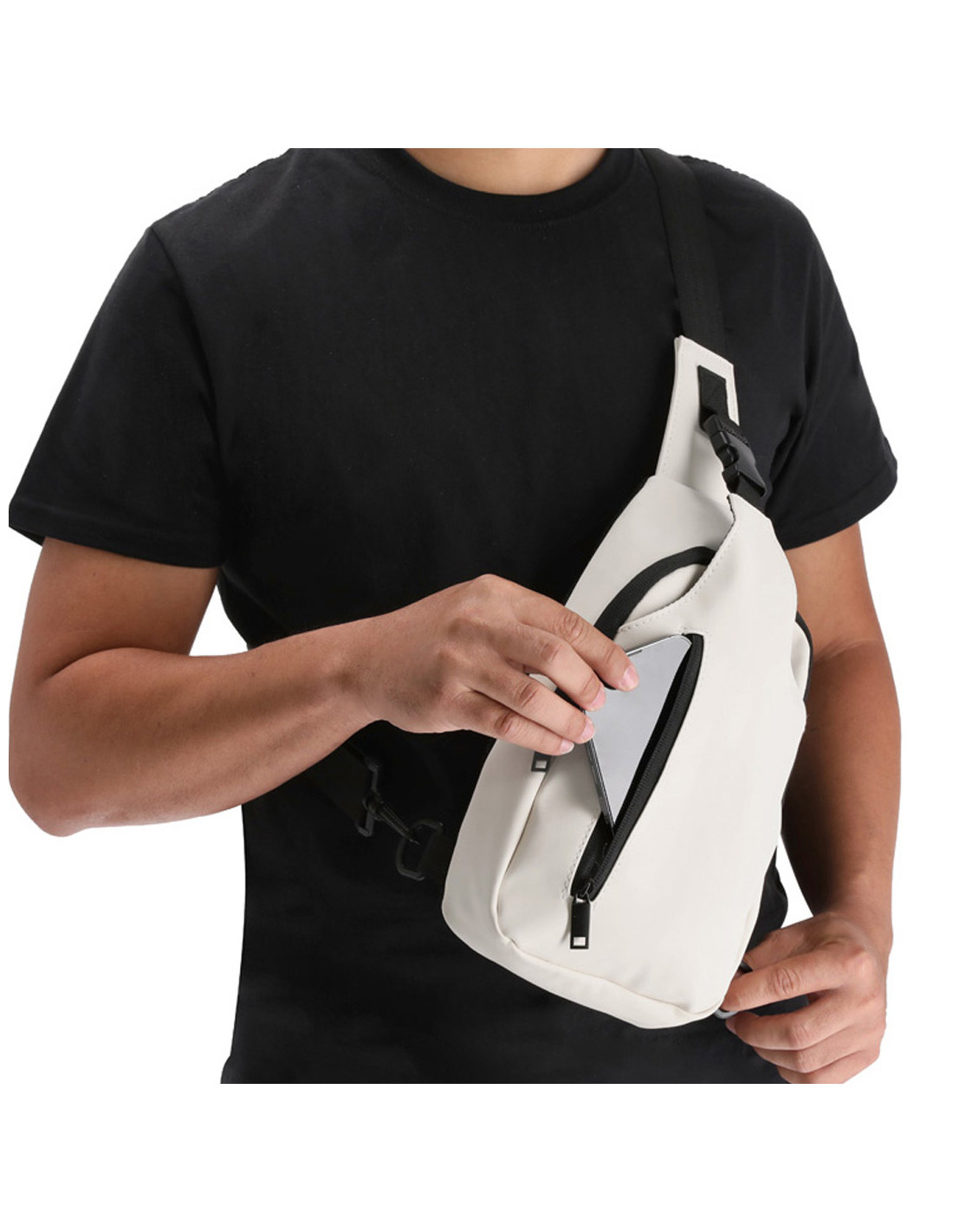 Bandolera de suave PU. Con sistema de cierre de cremallera invisible con doble tirador. Cuenta con un espacioso bolsillo principal y un práctico bolsillo frontal con cremallera. Incluye una cinta de transporte ajustable, con diferentes opciones de uso, proporcionando versatilidad y comodidad en cualquier ocasión.