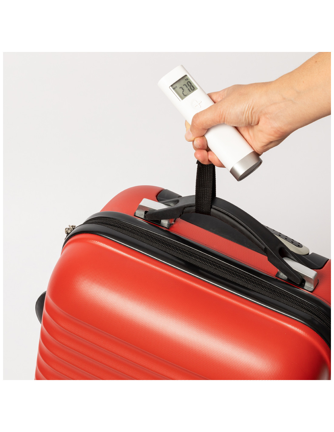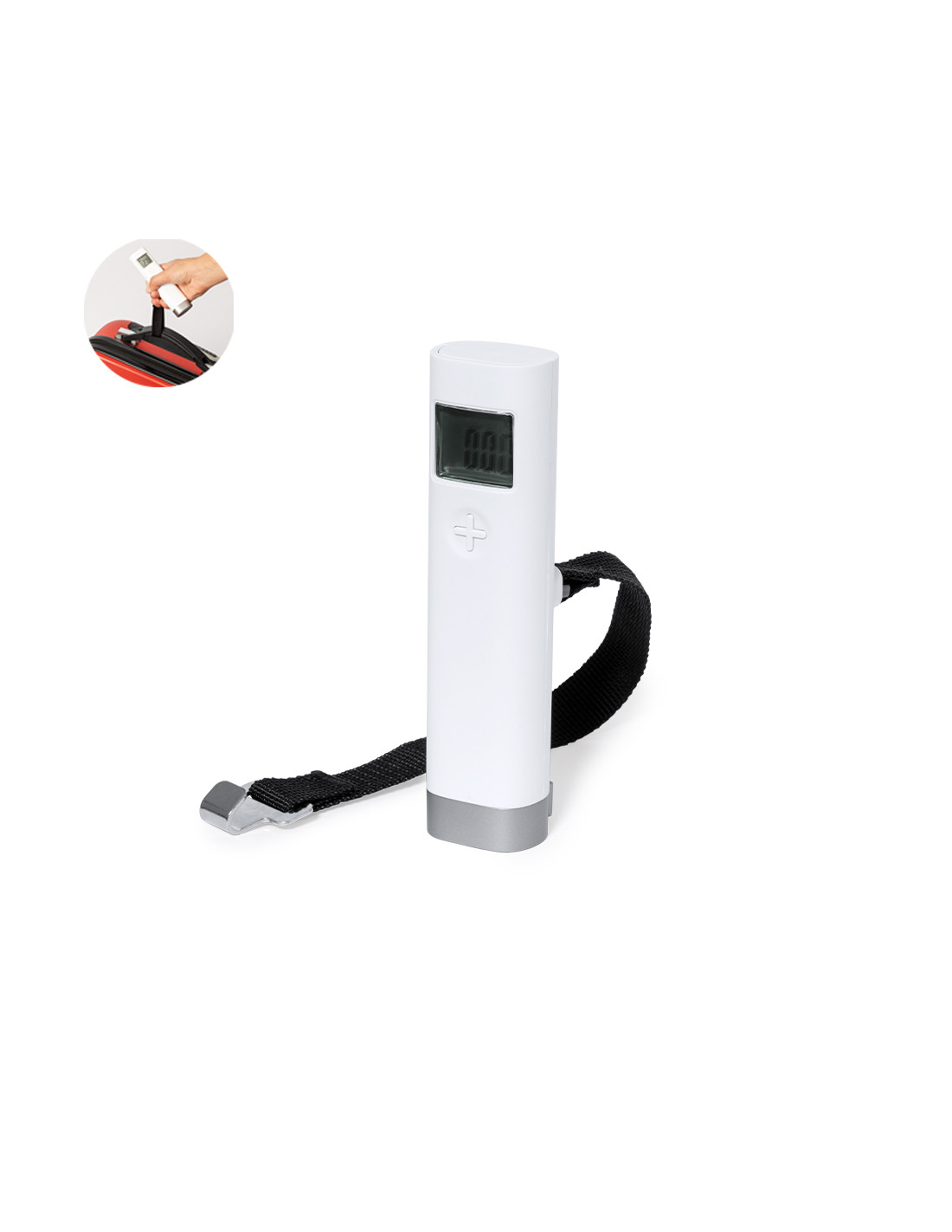 Ligera y práctica báscula digital para equipaje. Con pantalla digital y capacidad de hasta 50kg de peso. Fácil de transportar y de enganchar a maletas, mochilas o bolsas gracias a su práctico gancho. Disponible manual de instrucciones en español e inglés. Alimentación a pilas (1 pila de botón incluida).