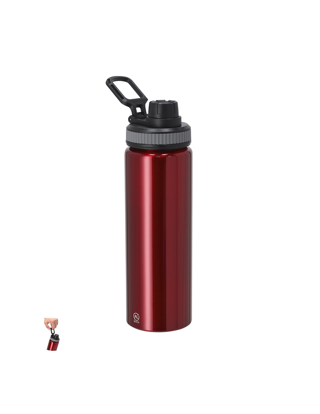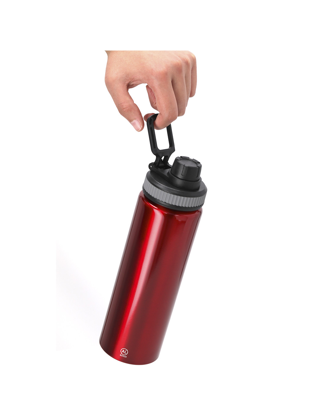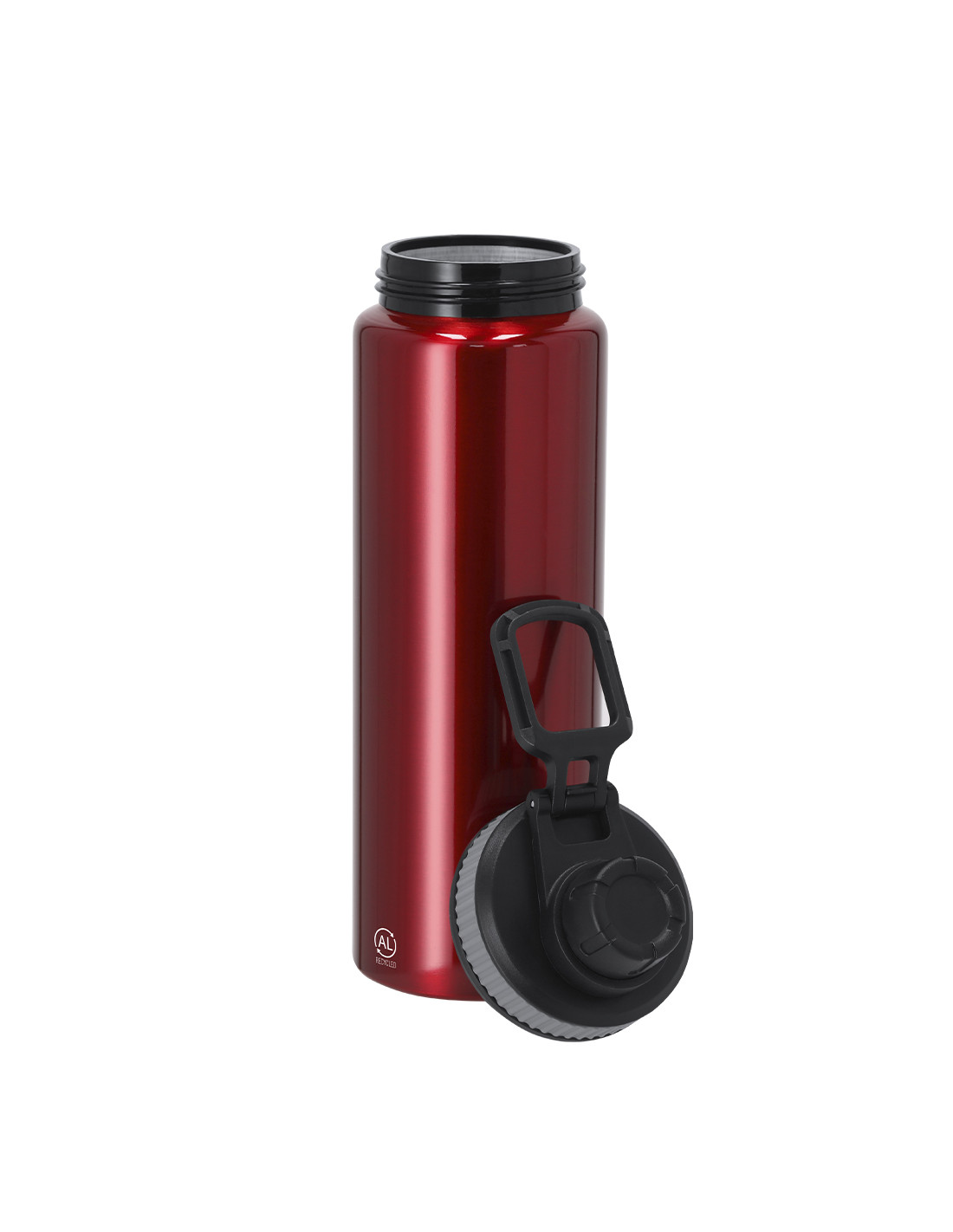 Bidón de Aluminio Reciclado con 800 ml de capacidad. Incluye tapadera color negro con sistema de cierre a rosca, agarre de silicona gris para un óptimo sellado, dosificador y asa para transporte ajustable. Incluye distintivo Aluminio Reciclado.El aluminio reciclado es un material con posibilidades de reciclaje casi infinitas, sin perder sus propiedades originales y consumiendo menos energía en este proceso.Certificación GRS (Global Recycled Standard / Estándar de Reciclaje Global), que garantiza el origen reciclado del material usado para fabricar el producto.