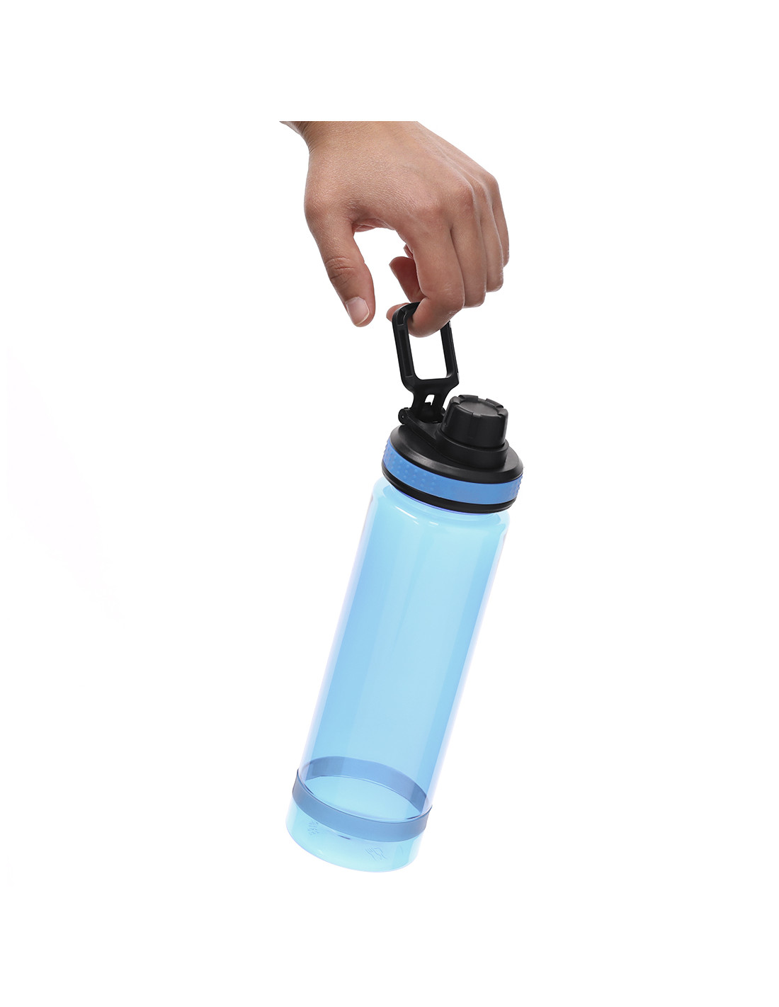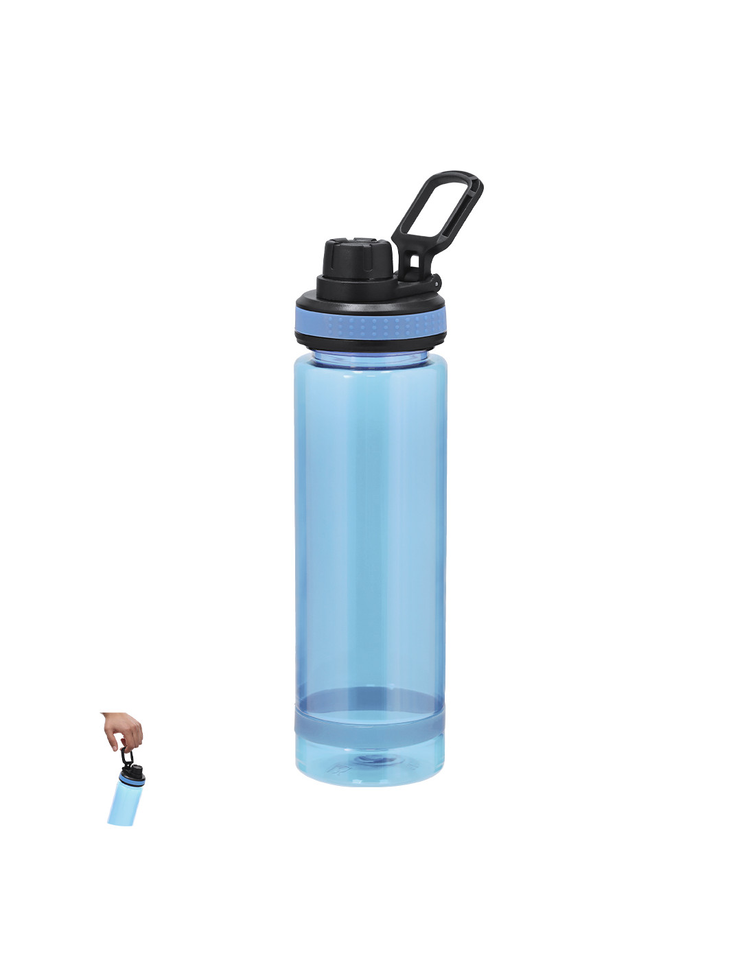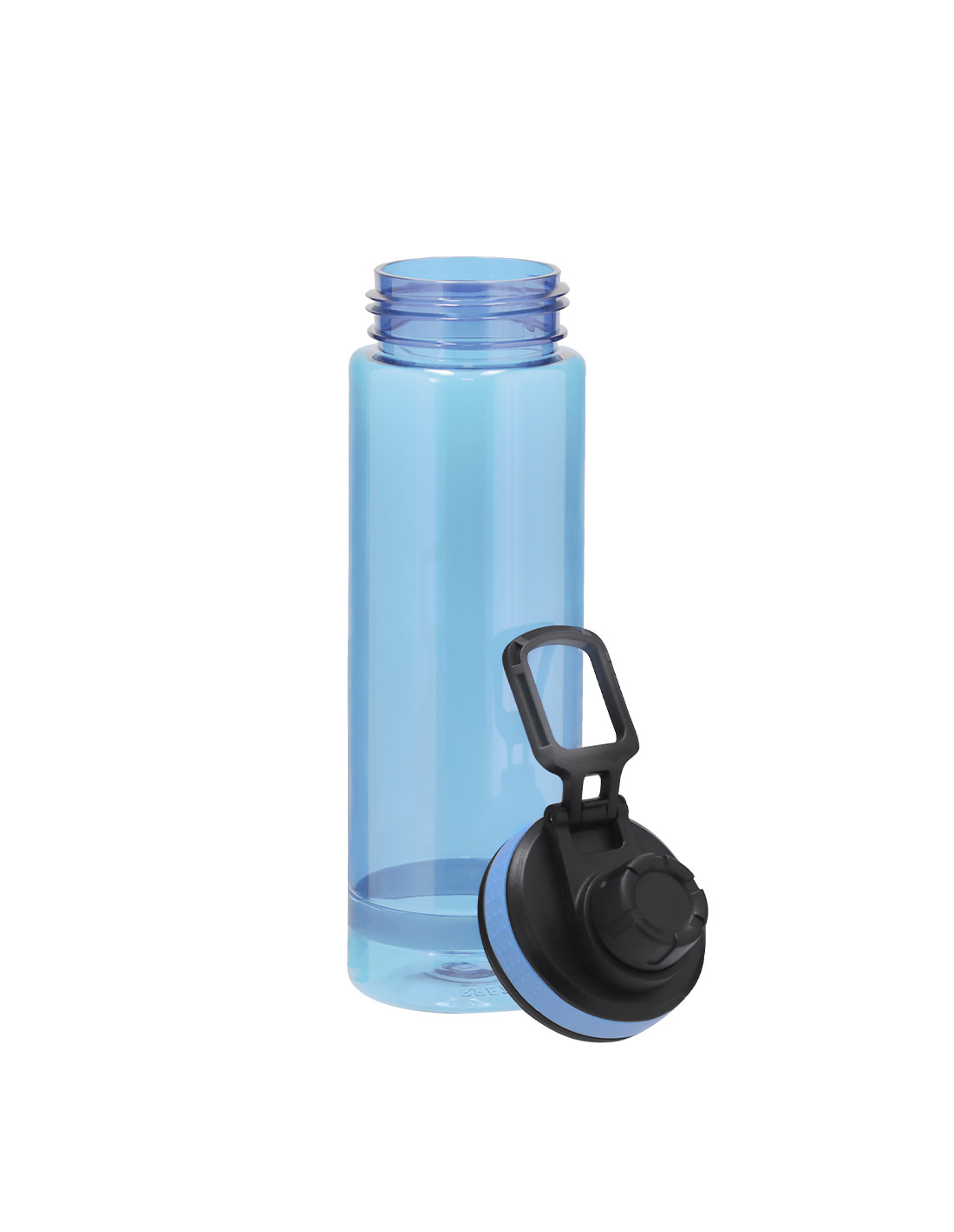 Bidón en resistente RPET y 700 ml de capacidad. En color translúcido mate. Incluye tapa negra de cierre a rosca para un óptimo sellado, cómodo tapón de rosca para beber y firme asa de transporte. Libre de BPA.El material RPET se elabora a partir de plástico reciclado, para así fomentar la reutilización de residuos plásticos y ayudar a la sostenibilidad del planeta.