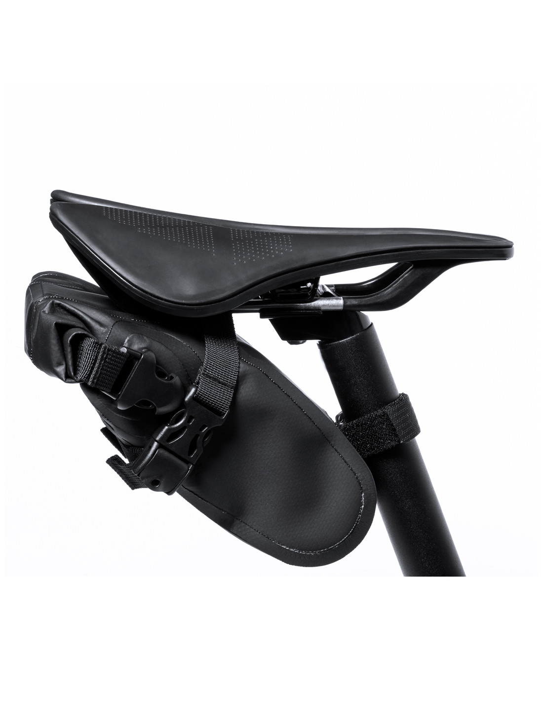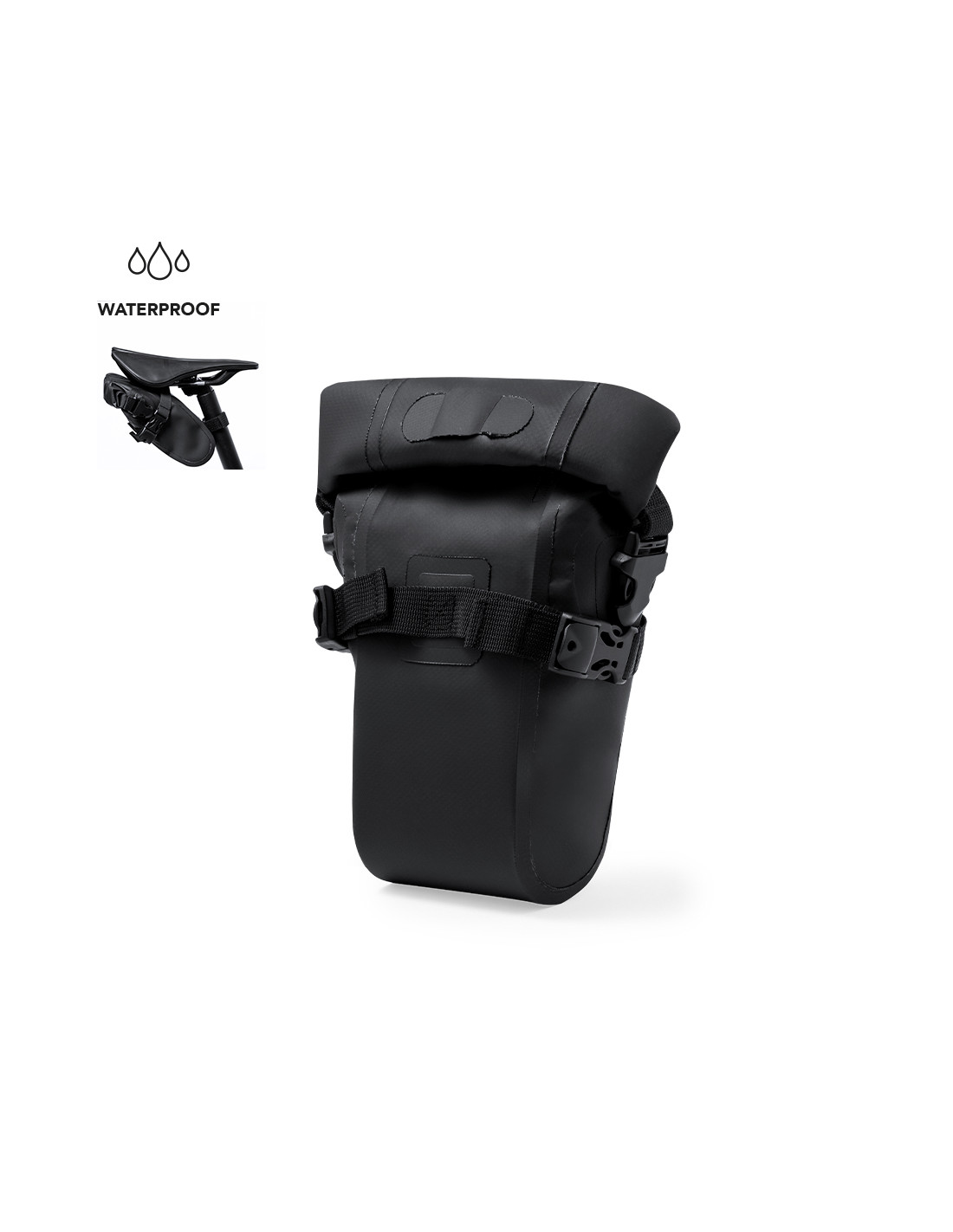 Bolsa para bicicleta impermeable. Complemento perfecto para bicicletas, con acoples para sillín y tija. Con cierre de hebilla y sistema de cierre plegable para una mayor impermeabilidad.