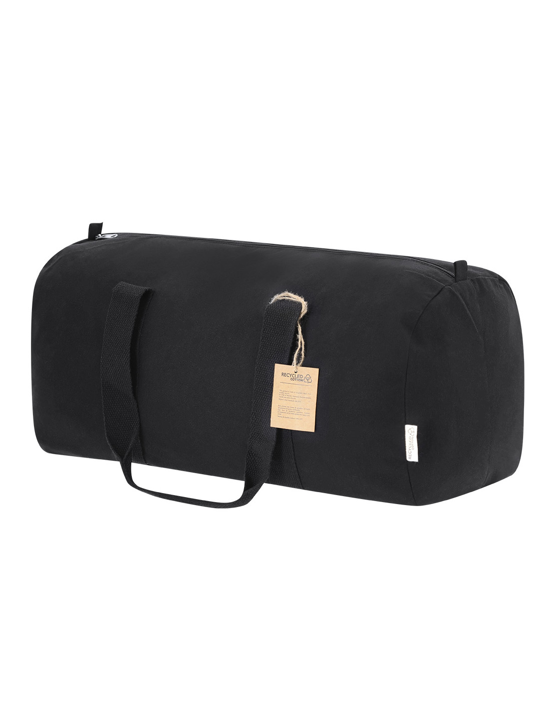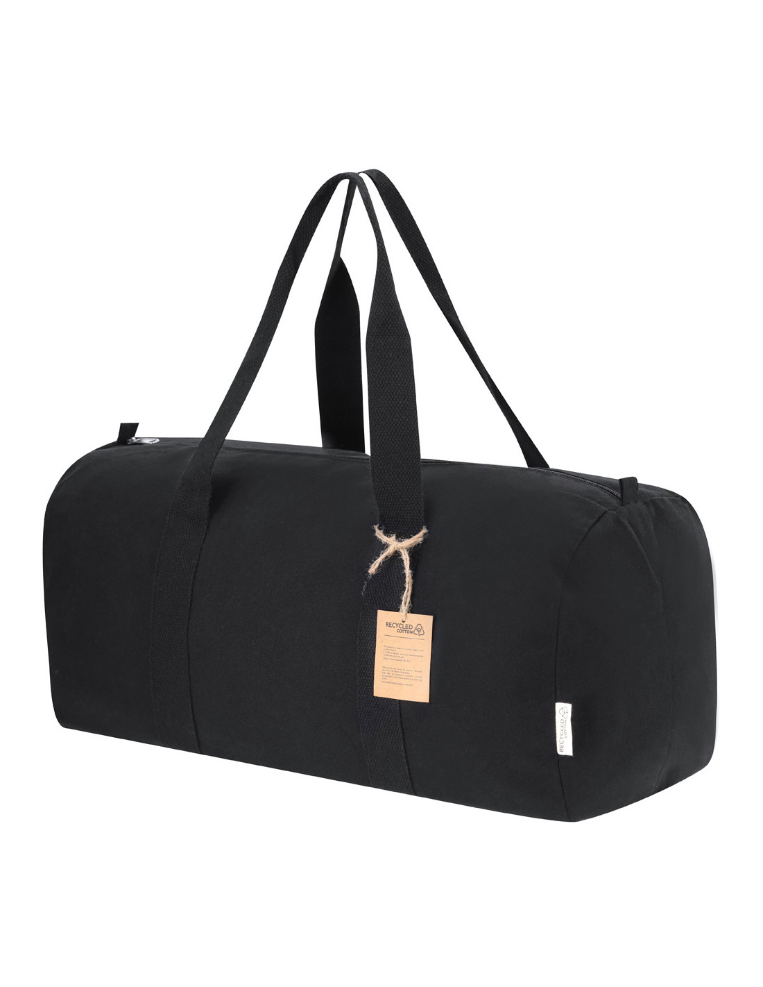 Bolso fabricado en material 100% canvas reciclado. Con resistentes asas alrededor del bolso y compartimento principal con cierre de cremallera. Etiqueta exterior con logotipo Algodón Reciclado.