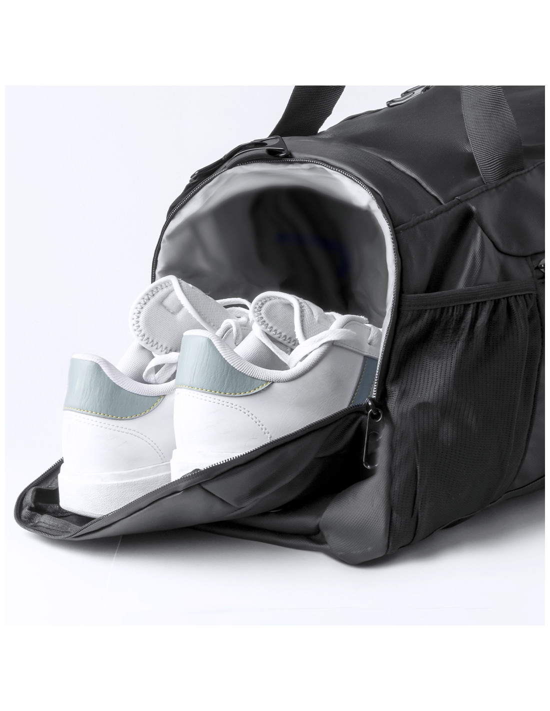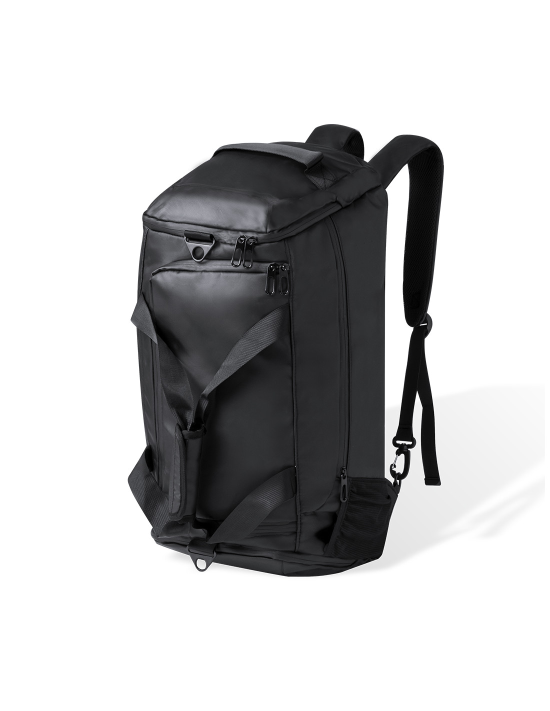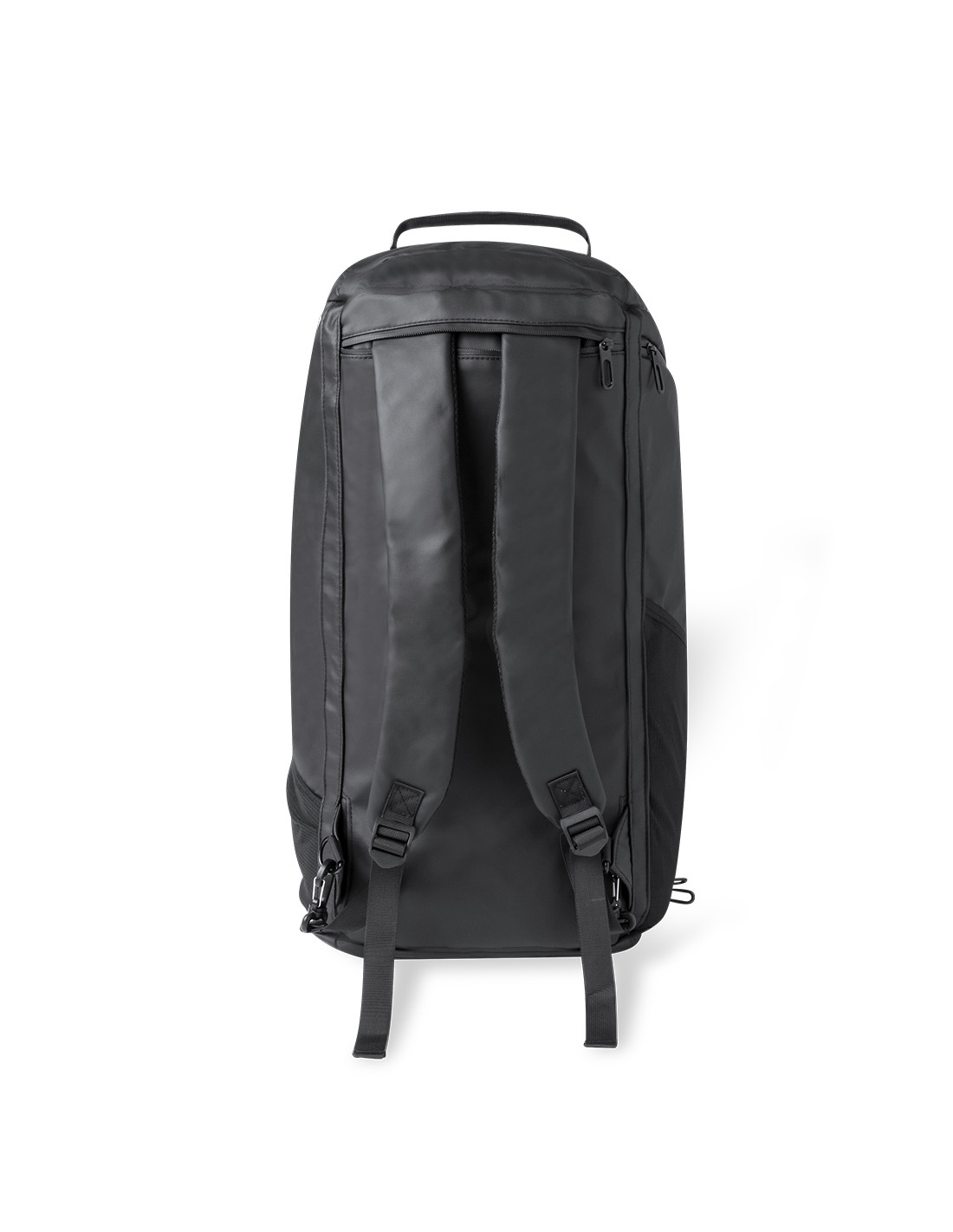 Bolso mochila confeccionado en resistente y suave polipiel. Su compartimento central se cierra mediante cremallera de doble tirador. Además, presenta un bolsillo lateral independiente y uno más en el otro extremo, ambos con cierre de cremallera; y en la base uno especialmente diseñado para zapatos. También incluye bolsillo exterior de rejilla. Ofrece tres opciones de transporte: como mochila, gracias a las asas acolchadas y plegables; como bolso de mano; o bien como bandolera gracias a su cinta para el hombro ajustable. Las cremalleras están discretamente ocultas para un diseño más elegante. Presentado en bolsa individual.