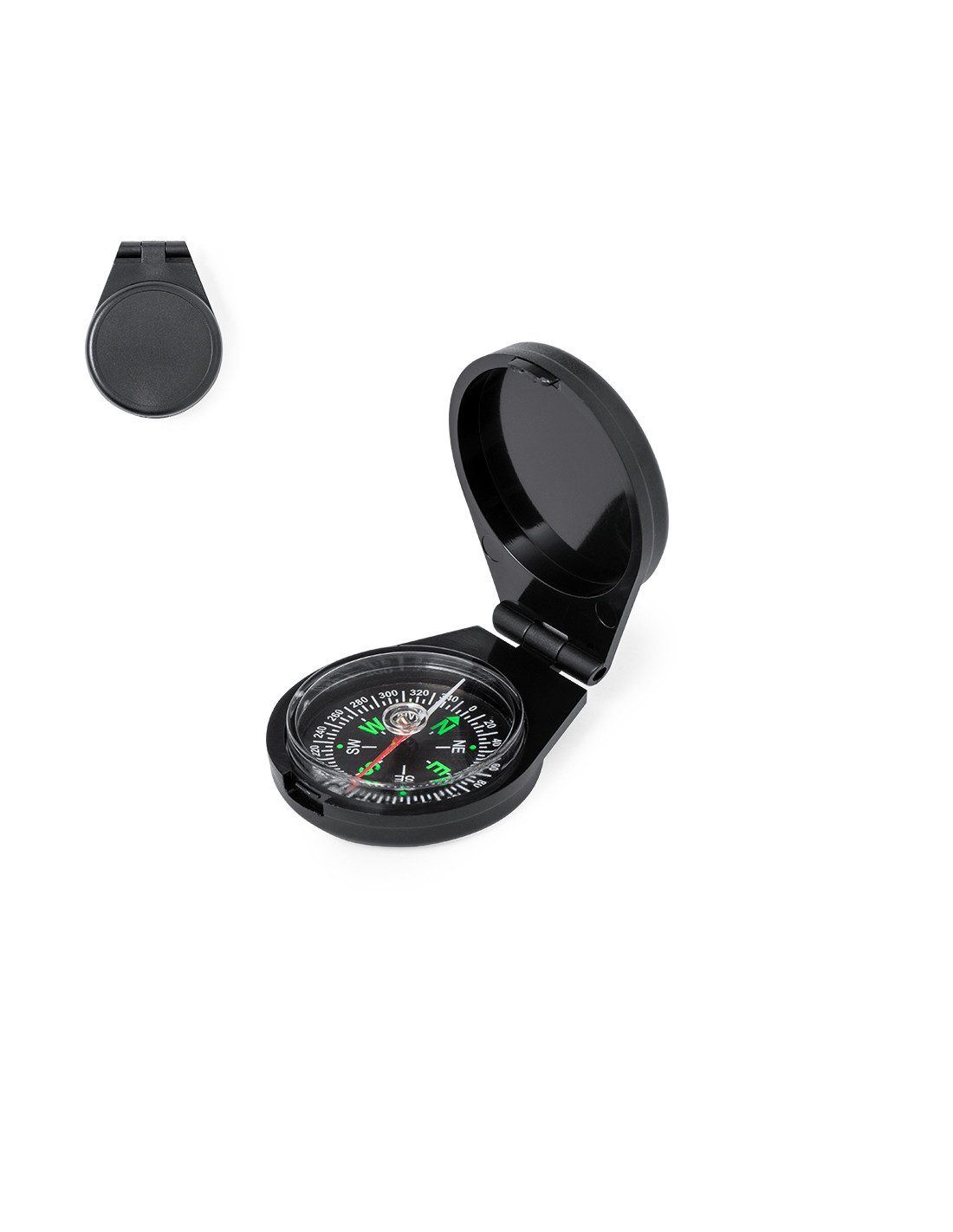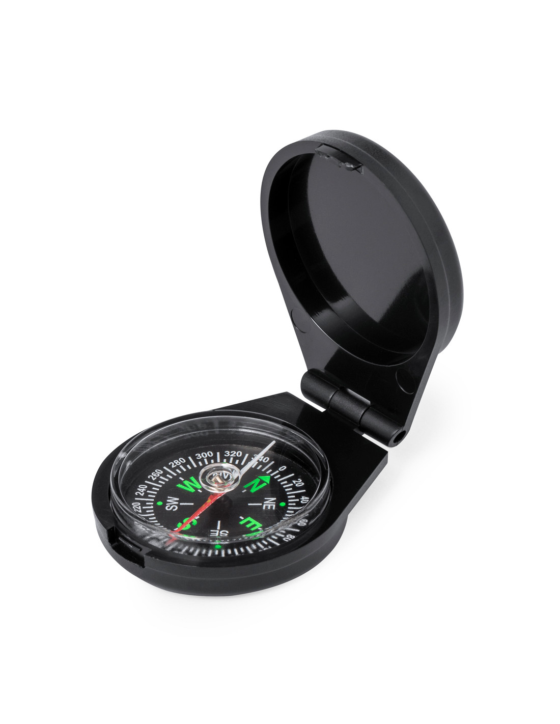 Brújula de bolsillo elaborada en resistente material ABS. Con tapa de cierre, dial en negro y los puntos cardinales en verde para facilitar la orientación. Presentada en caja individual.
