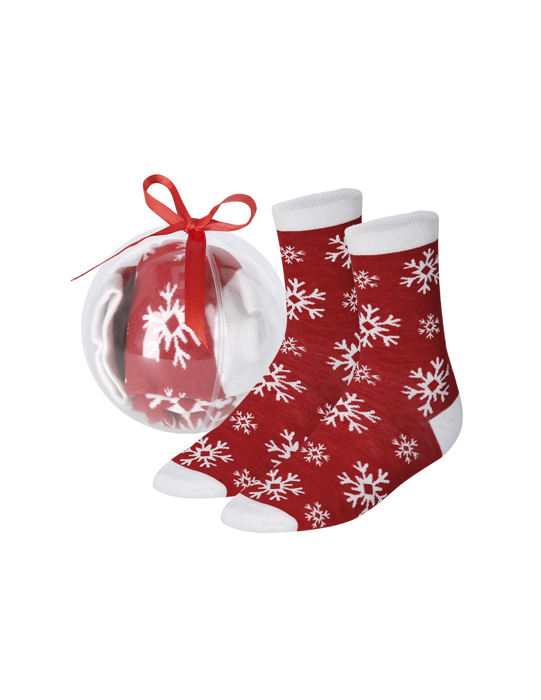 Suaves y cálidos calcetines con motivos navideños. Presentados en original bola de navidad transparente con lazo rojo. Fabricados en suave poliéster y disponibles en tallas S-M y L-XL. Un original regalo para lucir con estilo en navidad.