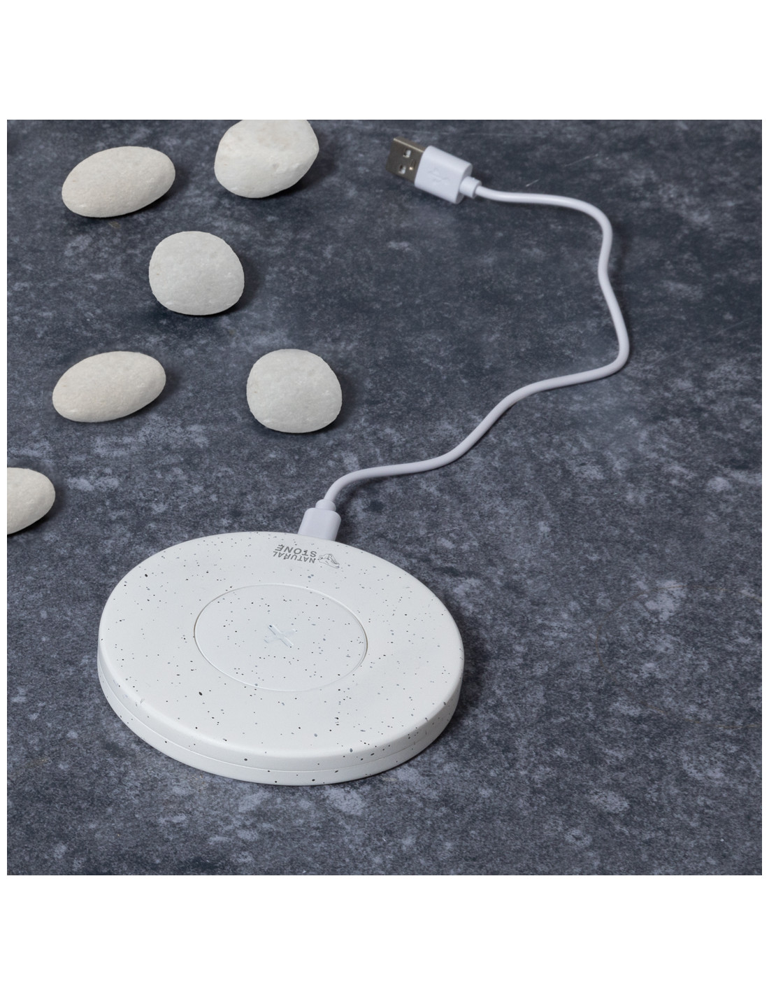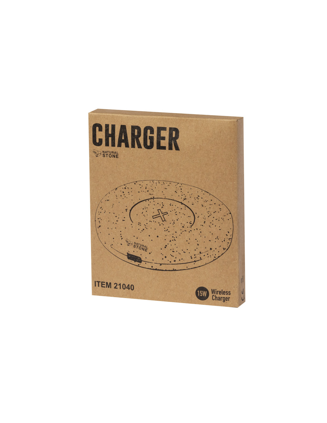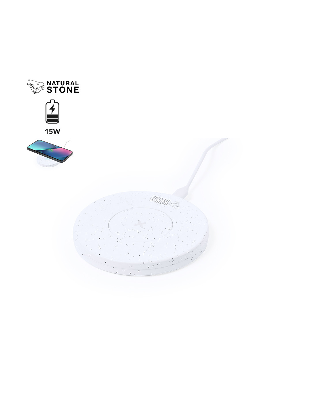 Cargador inalámbrico circular 15W, fabricado a partir de extractos de piedra natural en combinación con resistente ABS. Base antideslizante e indicador LED de estado de carga. Cable Tipo C incluido y compatible con smartphones con tecnología de carga inalámbrica. Presentado en atractiva caja de diseño kraft.Fabricado con extractos de piedra natural, ayudando a la reducción del uso de plásticos, además de proporcionar un acabado suave y resistente.Fabricado conforme a los estándares RoHS y en cumplimiento con los siguientes requisitos de seguridad:Sistema de protección contra sobrecalentamiento.Sistema de protección contra sobrecarga.Sistema de bloqueo para evitar cortocircuitos.