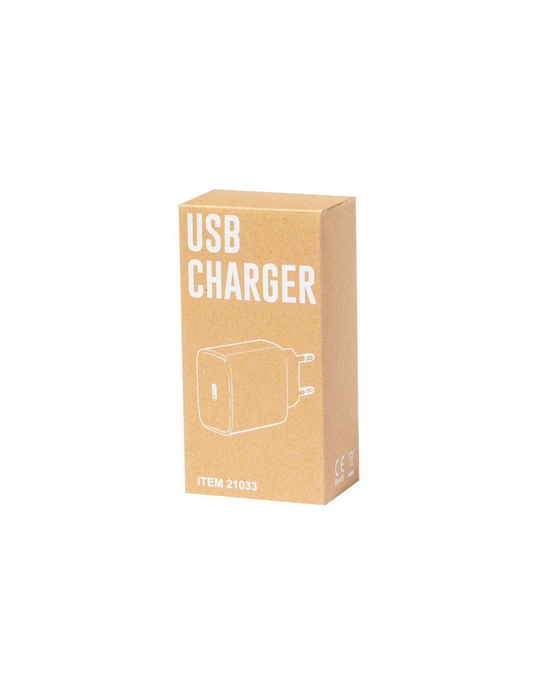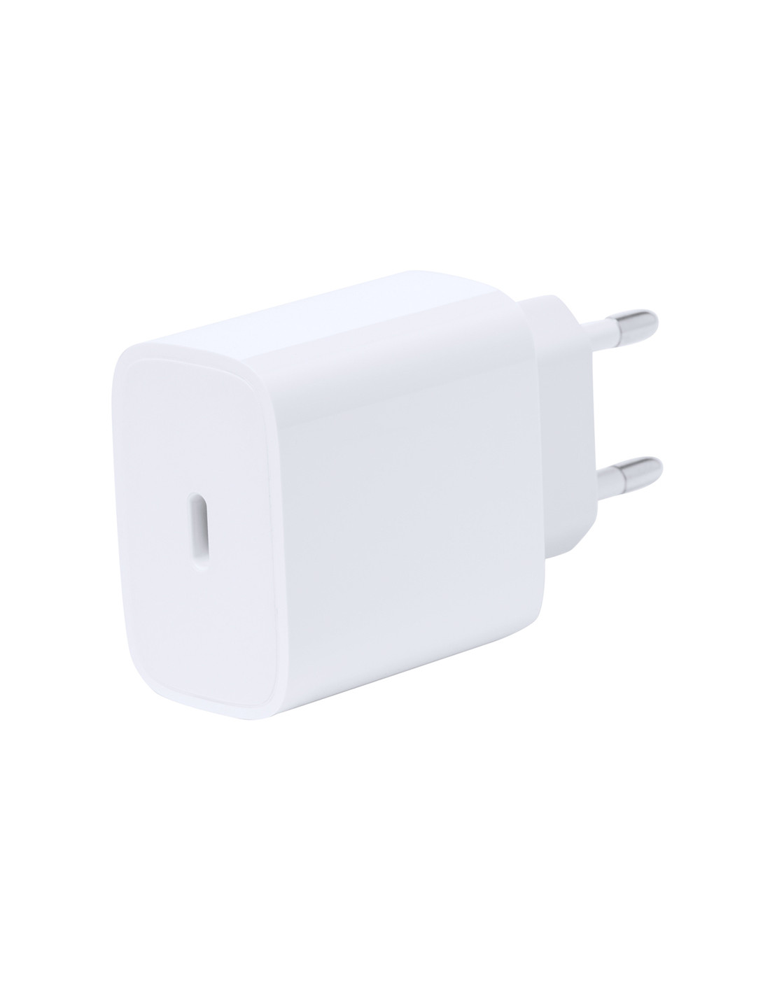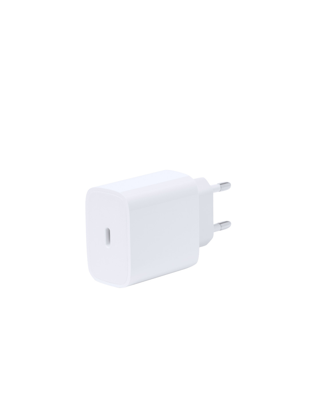 Cargador de pared Tipo C con carga rápida, fabricado en resistente ABS. Para enchufe europeo y presentado en atractiva caja individual de diseño kraft. Disponible manual de instrucciones en español e inglés.