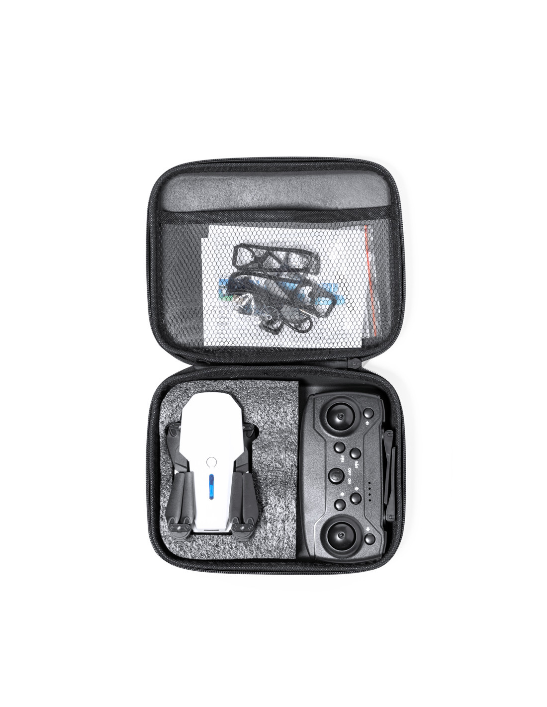 Dron en resistente material ABS. Con conectividad Wi-Fi, modo de grabación de vídeo y captura de fotos. Manejo del dron desde dispositivo móvil -APP compatible con iOS y Android- o bien mediante mando a distancia -incluido-. Con modo de vuelo automático -auto hover- que deja el dron suspendido en el aire. Batería de 600 mAh, recargable mediante cable Micro USB -incluido- y mando a distancia alimentado con pilas -3xAAA no incluidas-. Incluye estuche con recambios: 4 hélices, 4 protectores y destornillador, con cierre de cremallera e interior de espuma troquelado. Presentado en atractiva caja de diseño kraft, con manual de instrucciones en español e inglés .