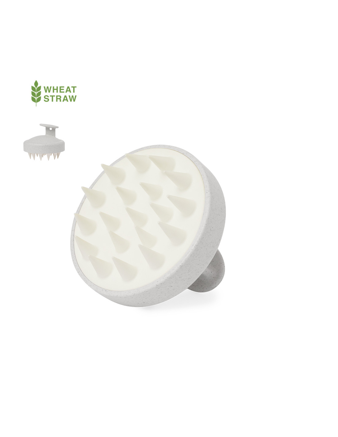 Cepillo masajeador para cuero cabelludo fabricado en caña de trigo. Eficiente emulsionador de champú para masajear placenteramente el cabello estimulando los capilares optimizando la limpieza con sus suaves púas en suave silicona. Presentado en caja individual de diseño kraft.La caña de trigo fomenta la utilización de materias primas naturales, reduciendo así las emisiones contaminantes.
