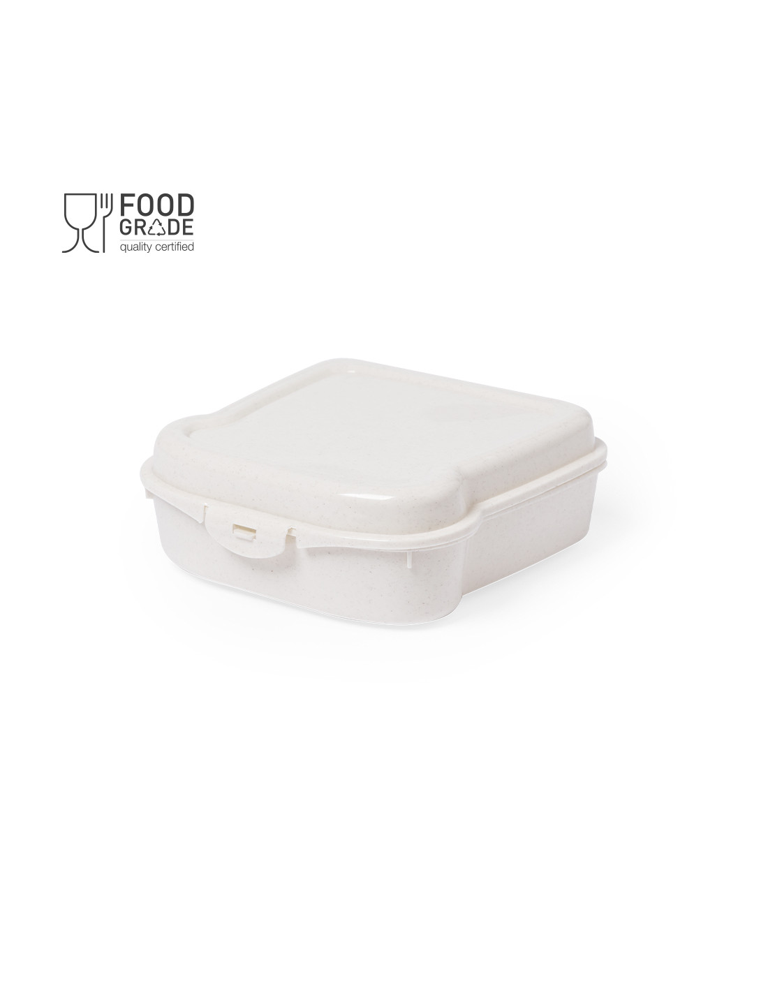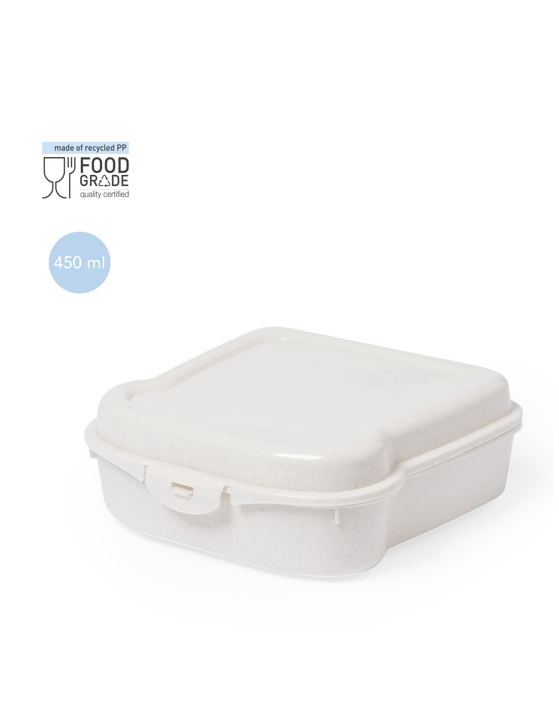 Fiambrera para sandwich de 450 ml de capacidad en color natural. Con cierre de seguridad.