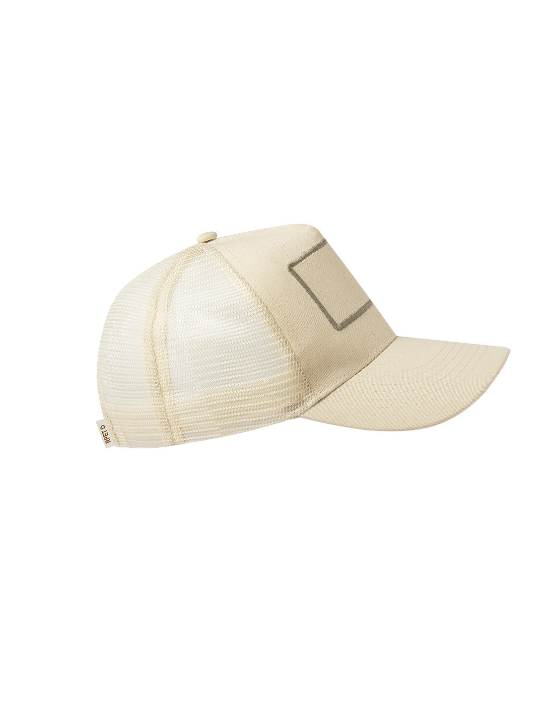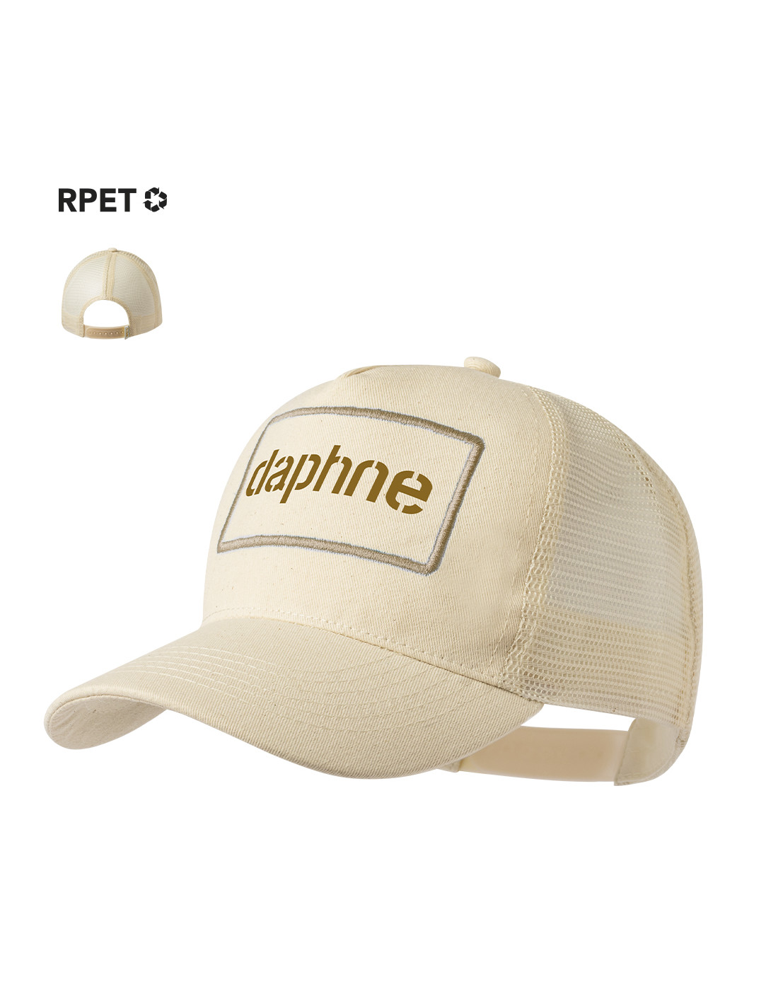 Gorra de 5 paneles tipo trucker fabricada en resistente poliéster RPET. Con marco frontal cosido, parte trasera de redecilla y cierre ajustable de plástico a juego en color natural. Con etiqueta distintiva de RPET. El material RPET se elabora a partir de plástico reciclado, para así fomentar la reutilización de residuos plásticos y ayudar a la sostenibilidad del planeta.