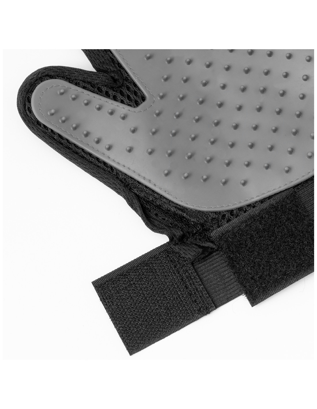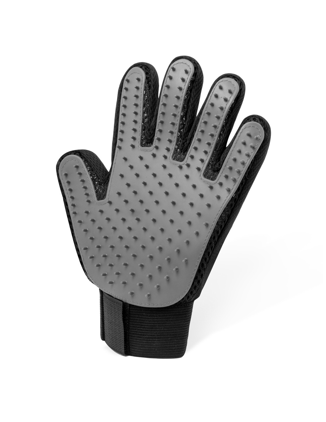 Guante para cepillar a las mascotas fabricado en suave poliéster y TPR. Diseñado para mimar a las mascotas, es fácil de usar y se ajusta a la mano gracias a su diseño ergonómico, con cinta de velcro adaptable. Las cerdas de suave TPR que atrapan el pelo suelto, para un cepillado fácil y cómodo. Presentado en una bolsa individual reciclada.