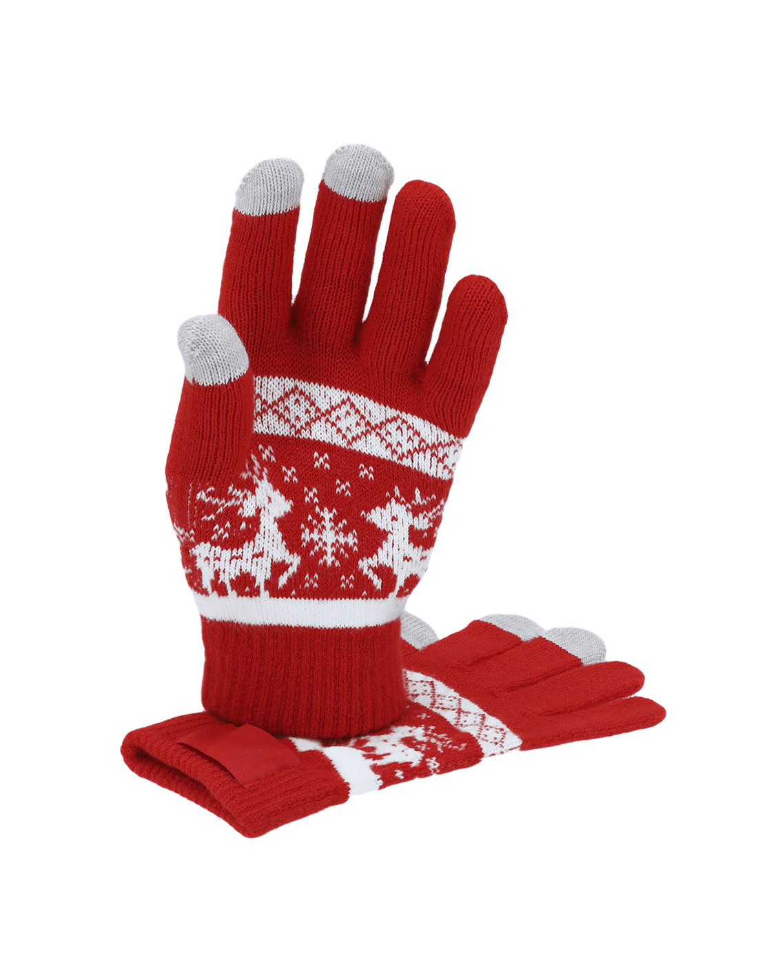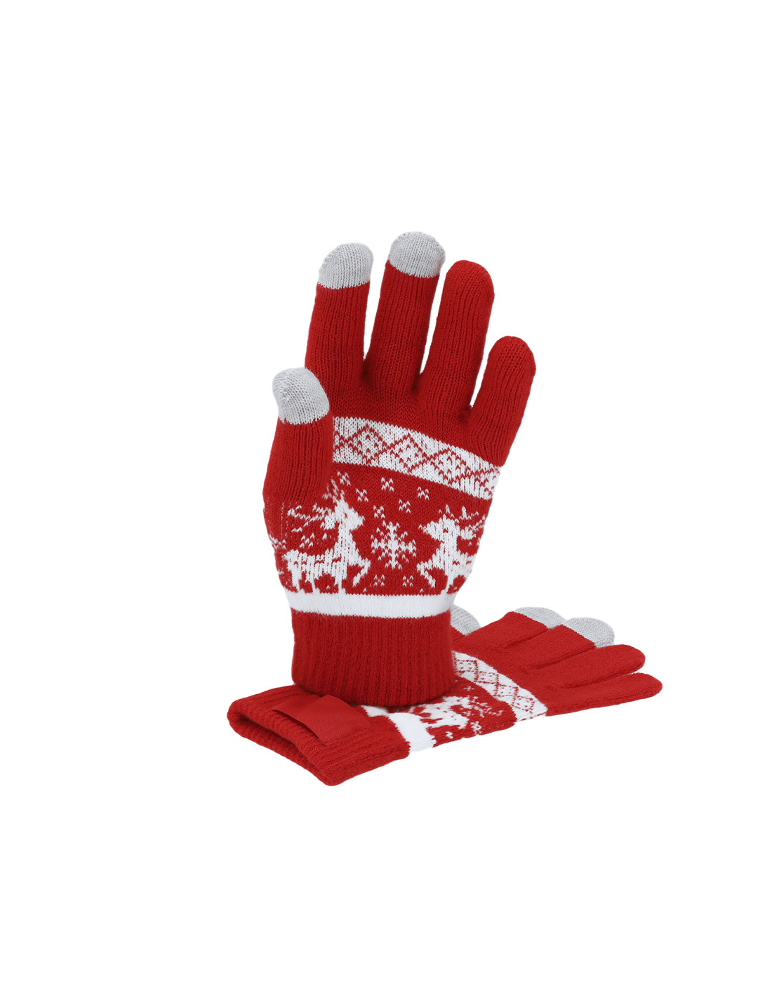 Cálidos guantes con motivos navideños. Función táctil en dedos corazón, índice y pulgar, fabricados en suave acrílico. Con etiqueta especial para el marcaje. Un original regalo para lucir con estilo en navidad.