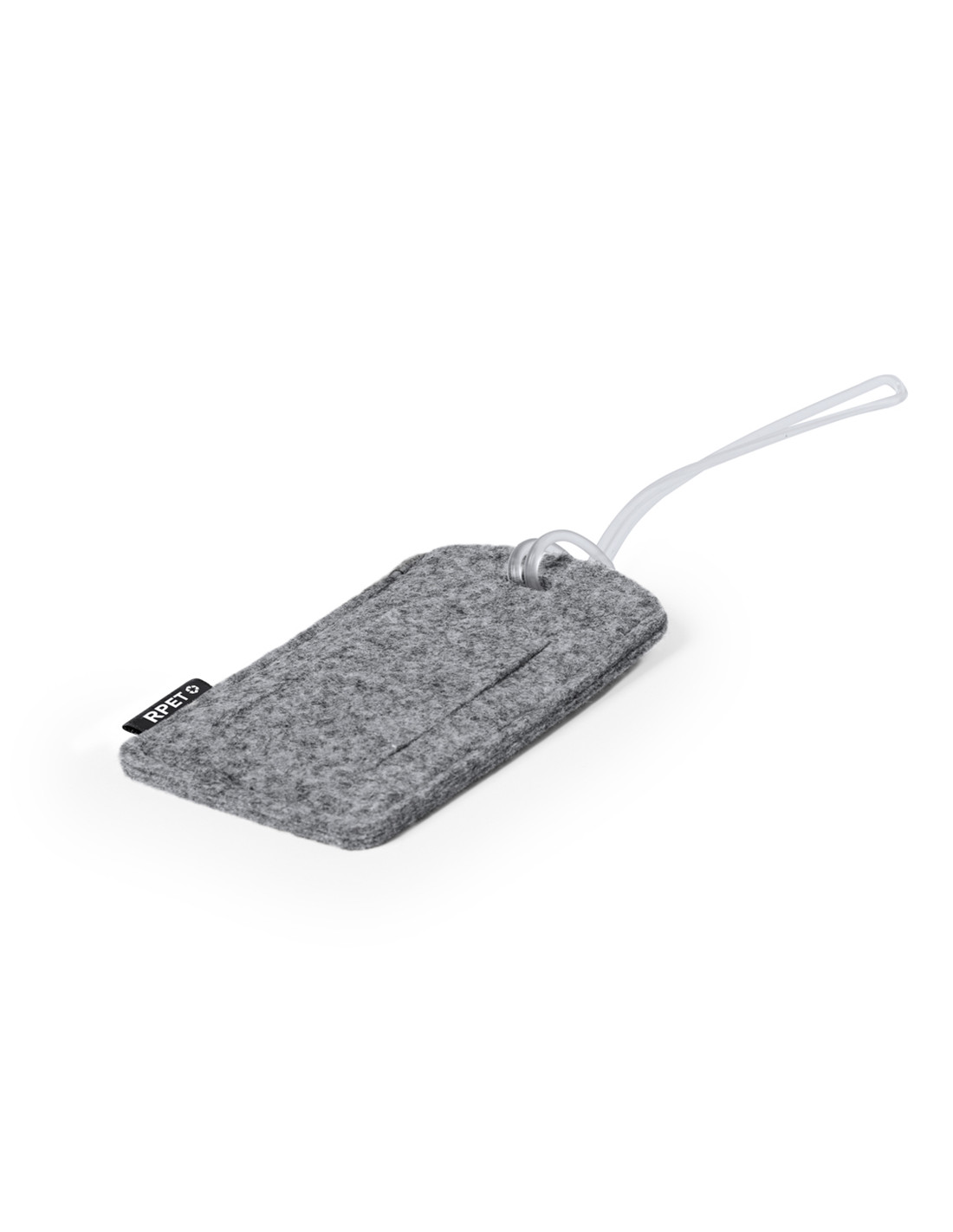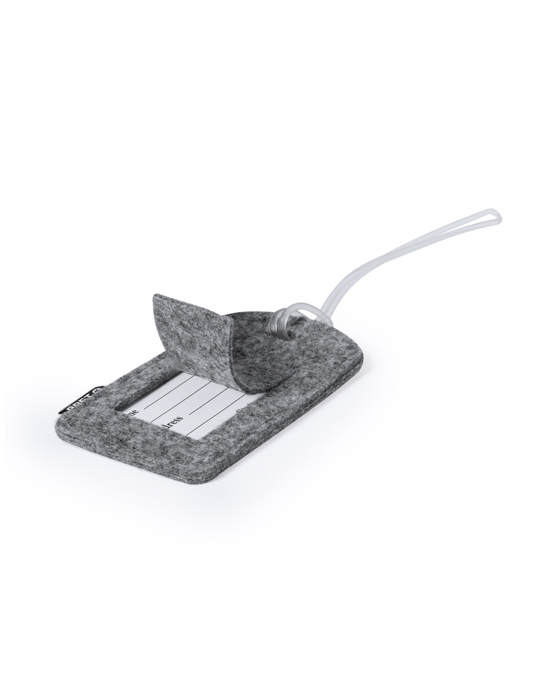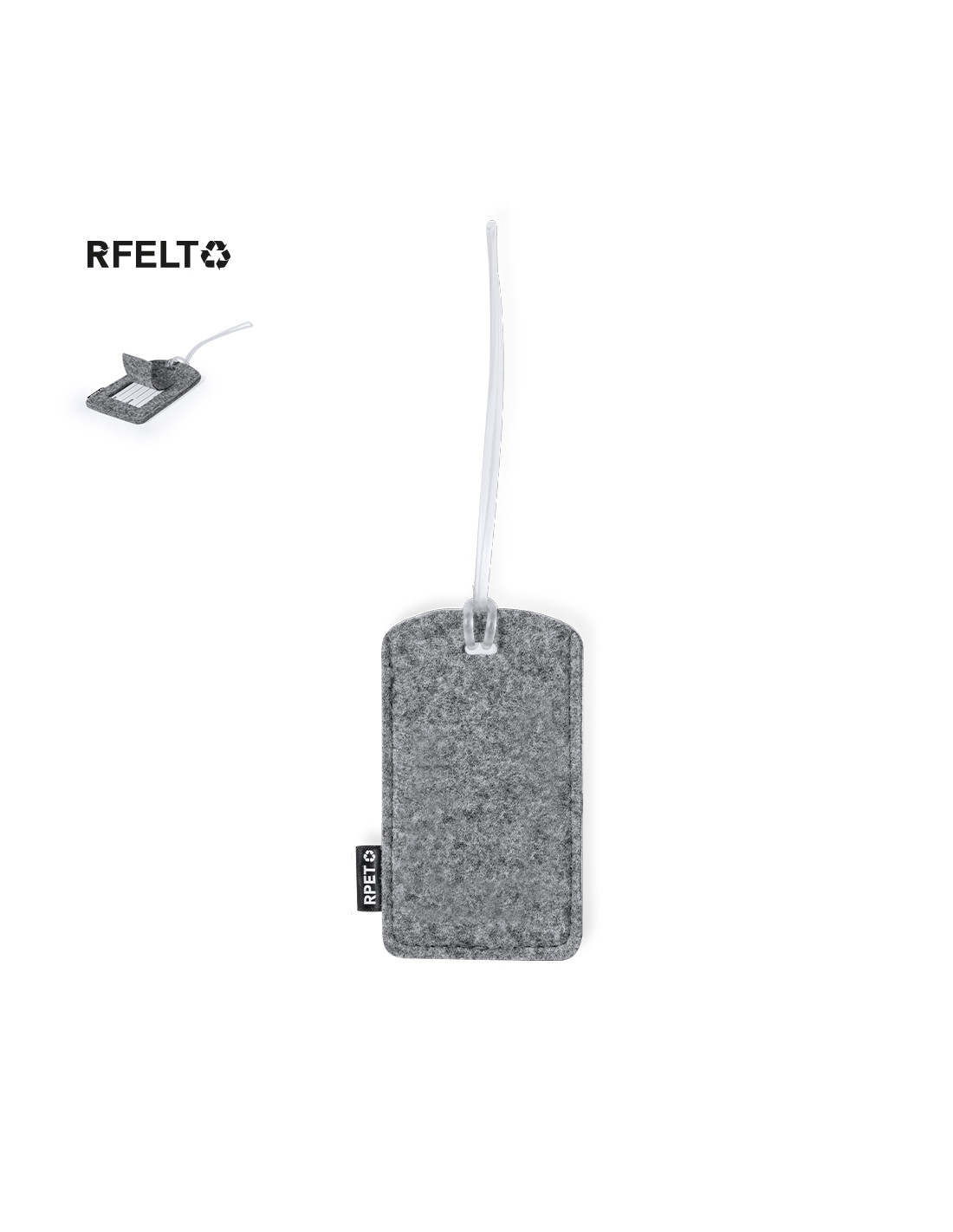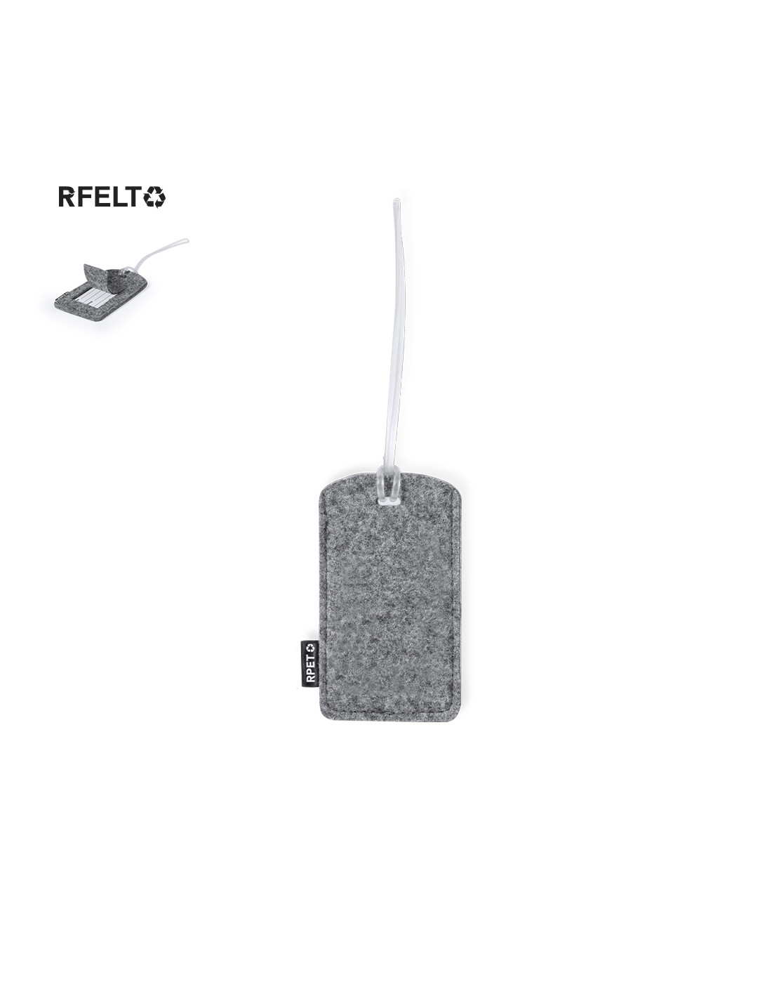 Identificador para maletas fabricado en fieltro RPET. Para amarrar a cualquier maleta gracias a su cinta flexible e indicar información básica, fabricado en fieltro RPET, con ventana y etiqueta distintiva de RPET.El fieltro RPET es fruto de la combinación del proceso de reciclaje de materiales plásticos junto con la técnica milenaria de fabricación del fieltro, dando como resultado un material de eco-tendencia que, además de ser de origen reciclado, también se convierte en reciclable.