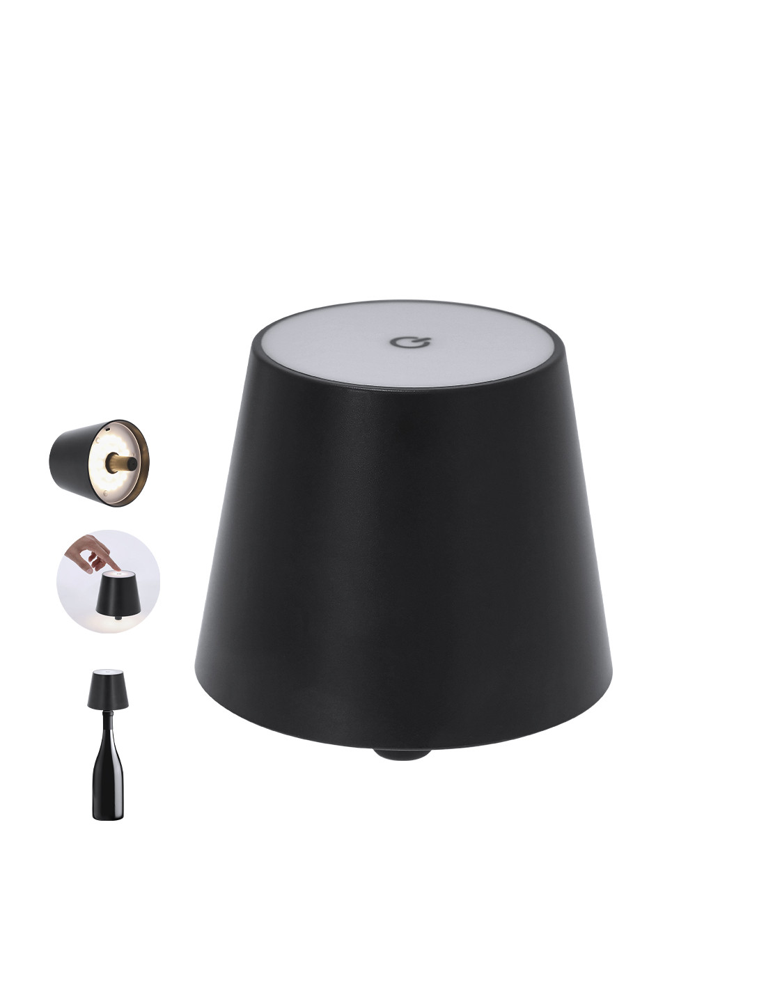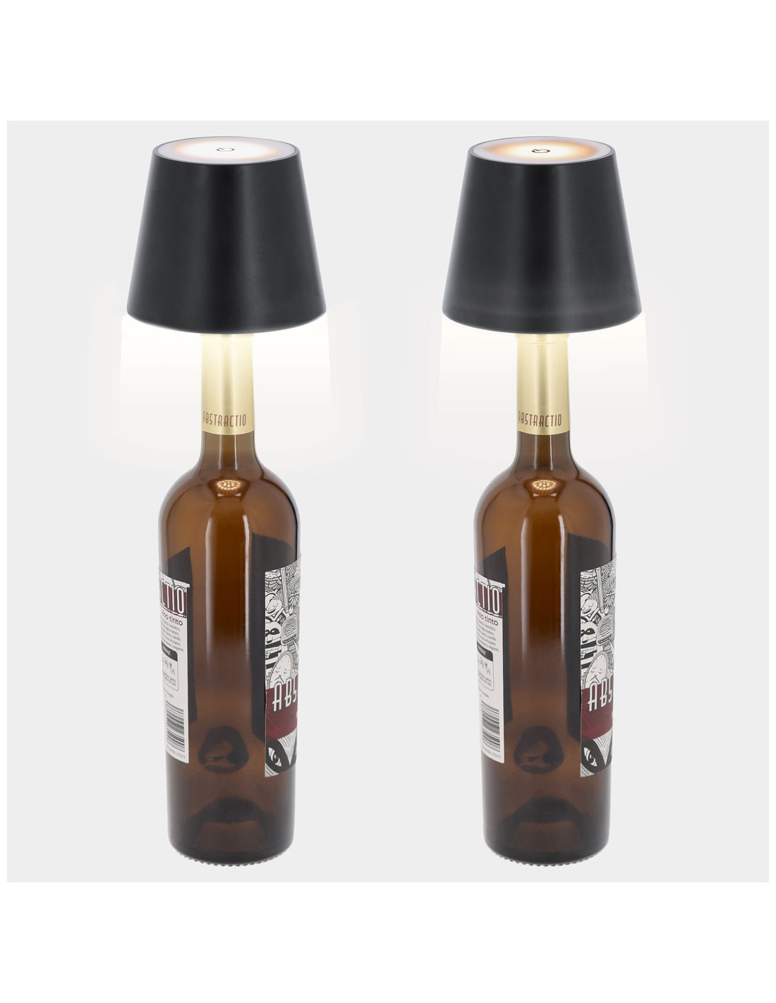 Lámpara LED con adaptador para insertar en la botella, creando así una original lámpara. Con 31 LEDs (27 blancos y 4 amarillos) de intensidad regulable por botón táctil. Con batería de 800mAh recargable por USB, cable Tipo C incluido.