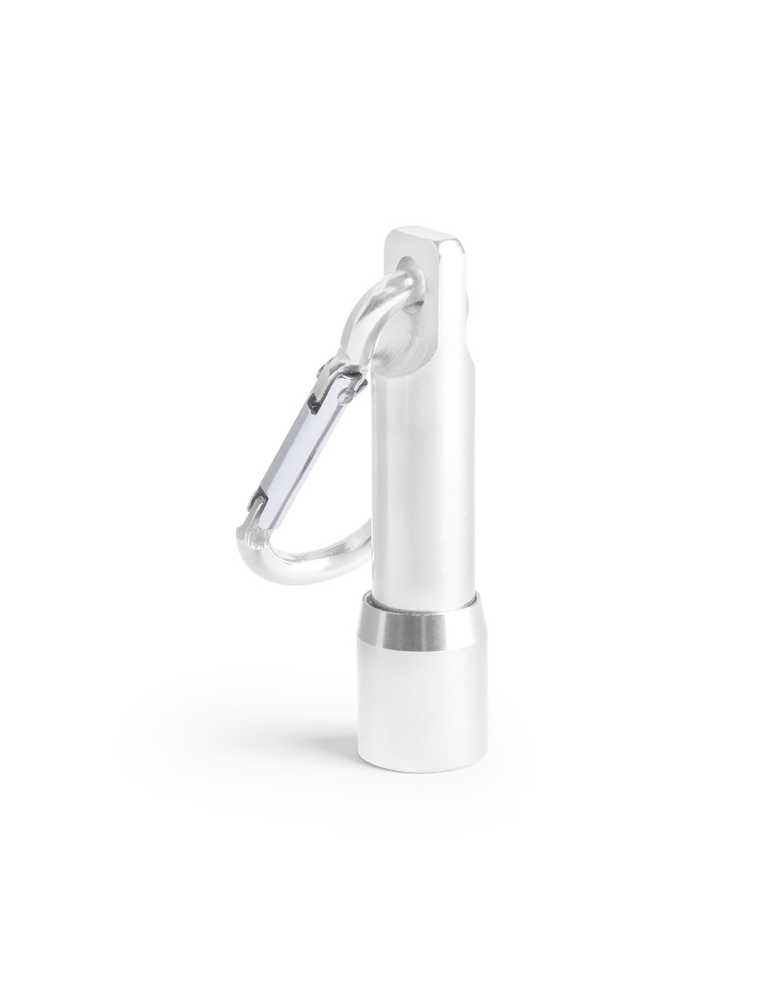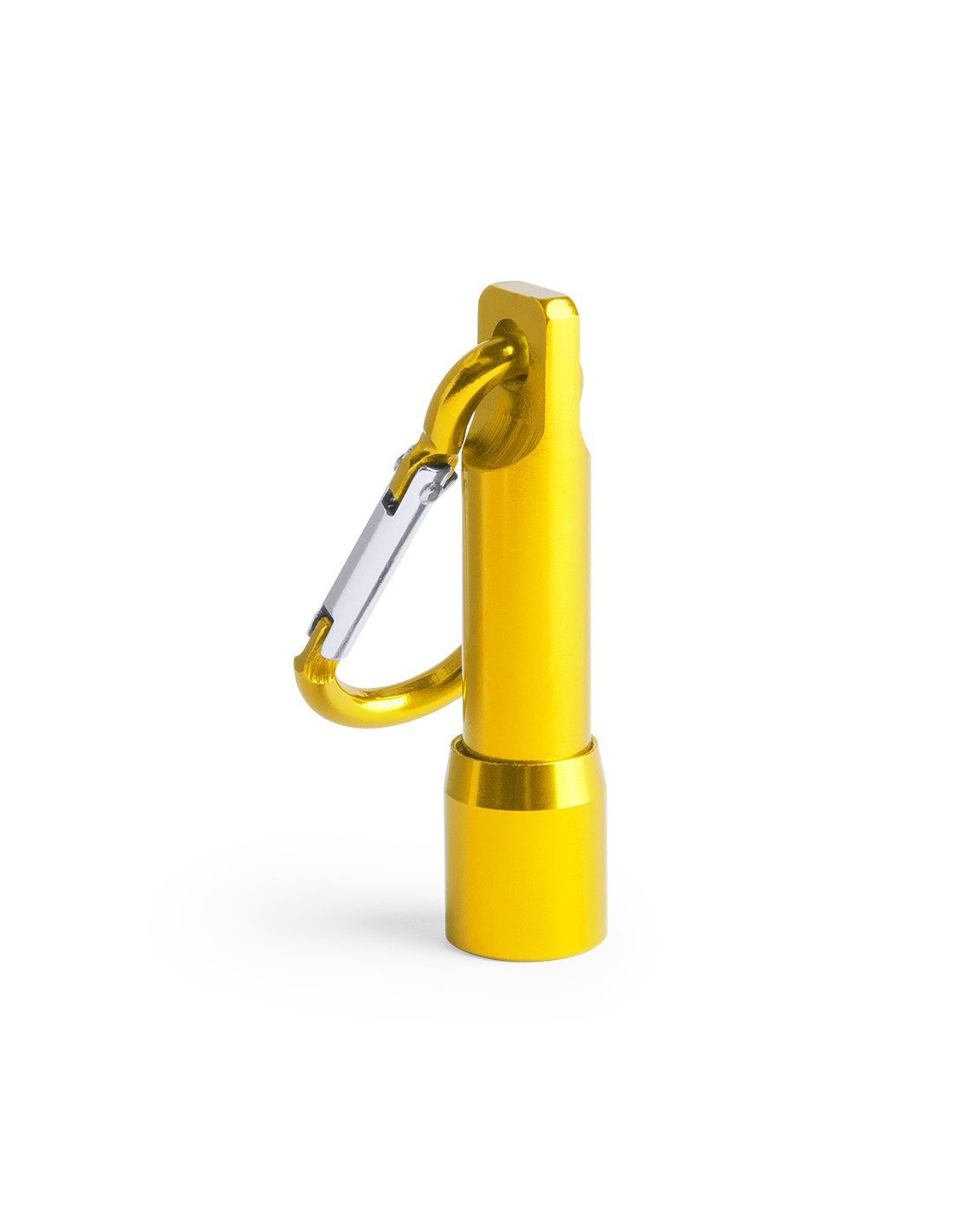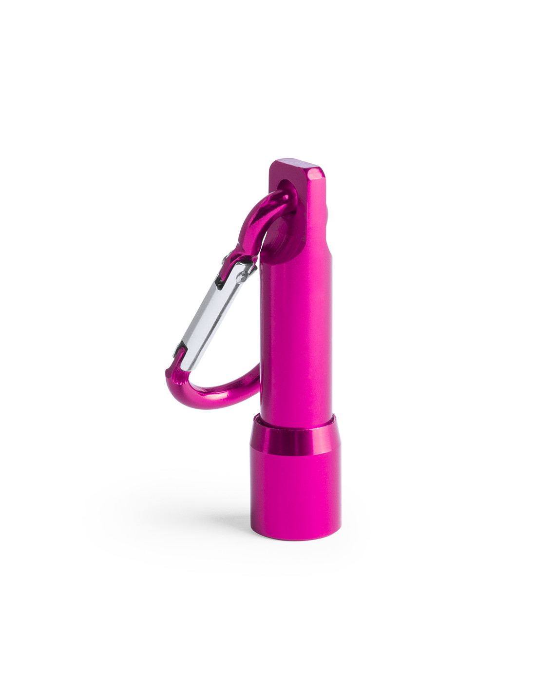 Linterna led con resistente cuerpo acabado en aluminio de variados colores. Con mosquetón de transporte a juego y pilas de botón incluidas con film protector.