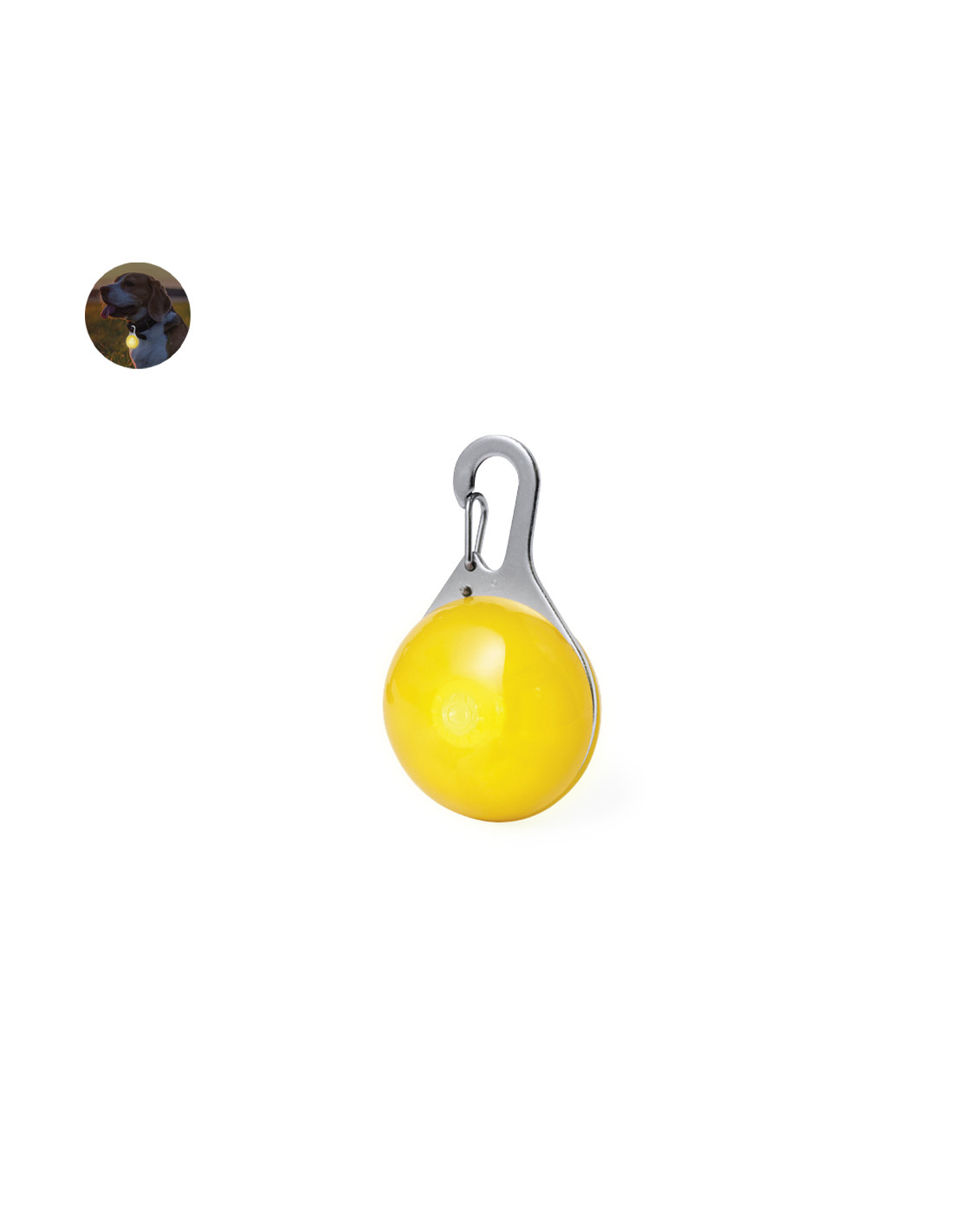 Luz de seguridad para mascotas. Práctico enganche para collar de mascotas con luz intermitente permitiendo una mayor visibilidad. Fácil de colgar gracias a su mosquetón incorporado y con pilas de botón incluidas.