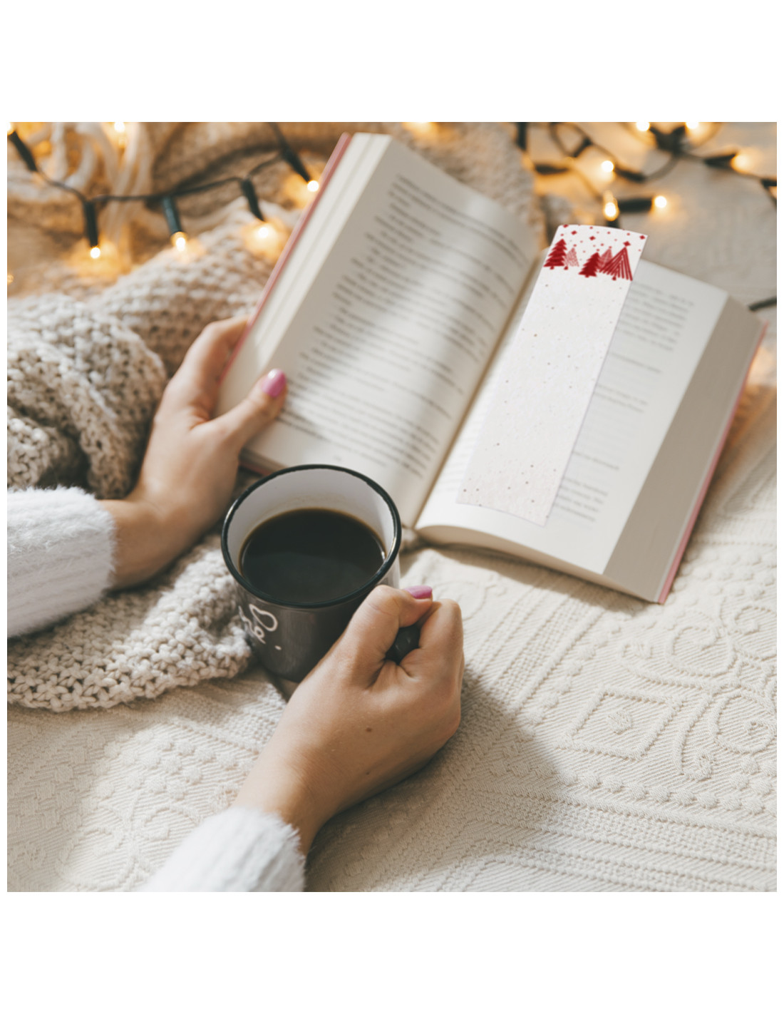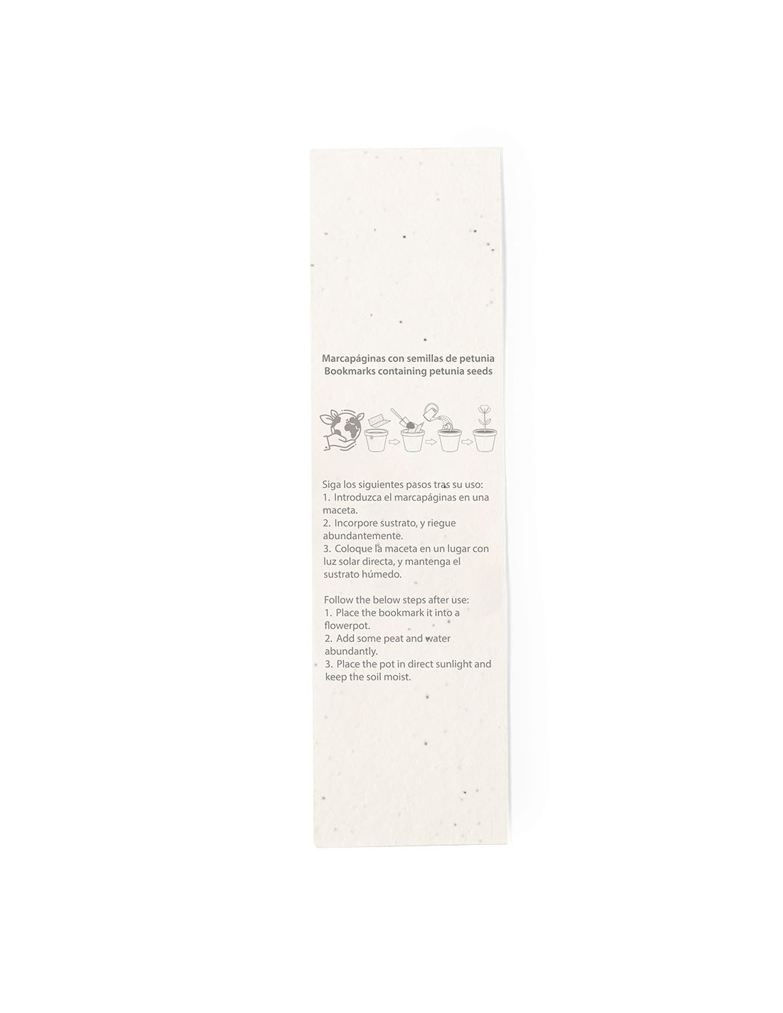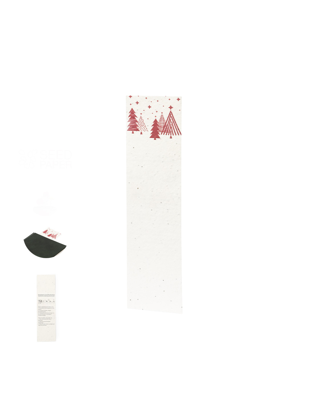 Marcapáginas de diseño navideño fabricado en papel de semillas. El papel incluye semillas de petunia, convirtiéndolo en papel plantable al final de su vida útil. Incluye instrucciones de plantado en la cubierta trasera y amplia superficie de marcaje.