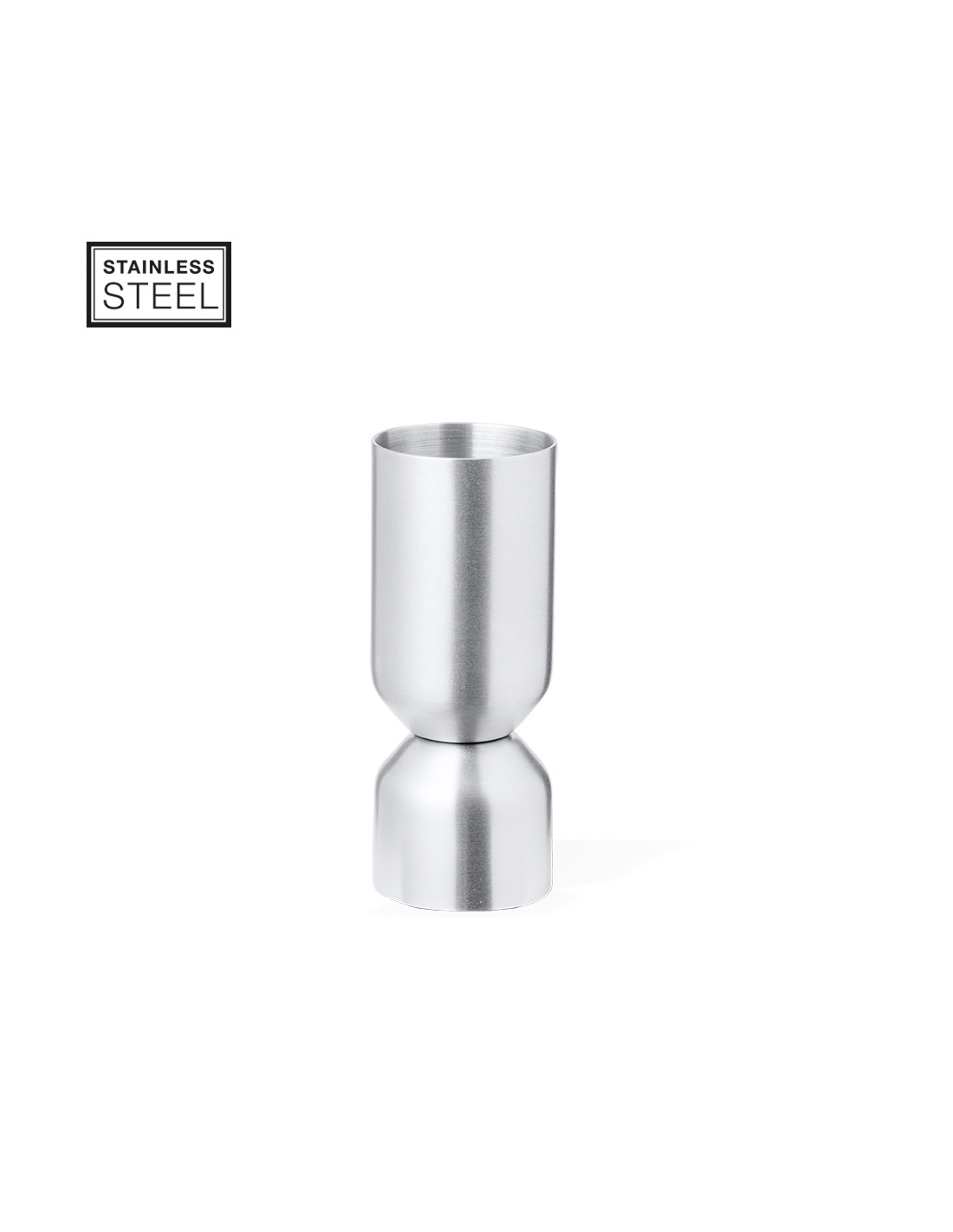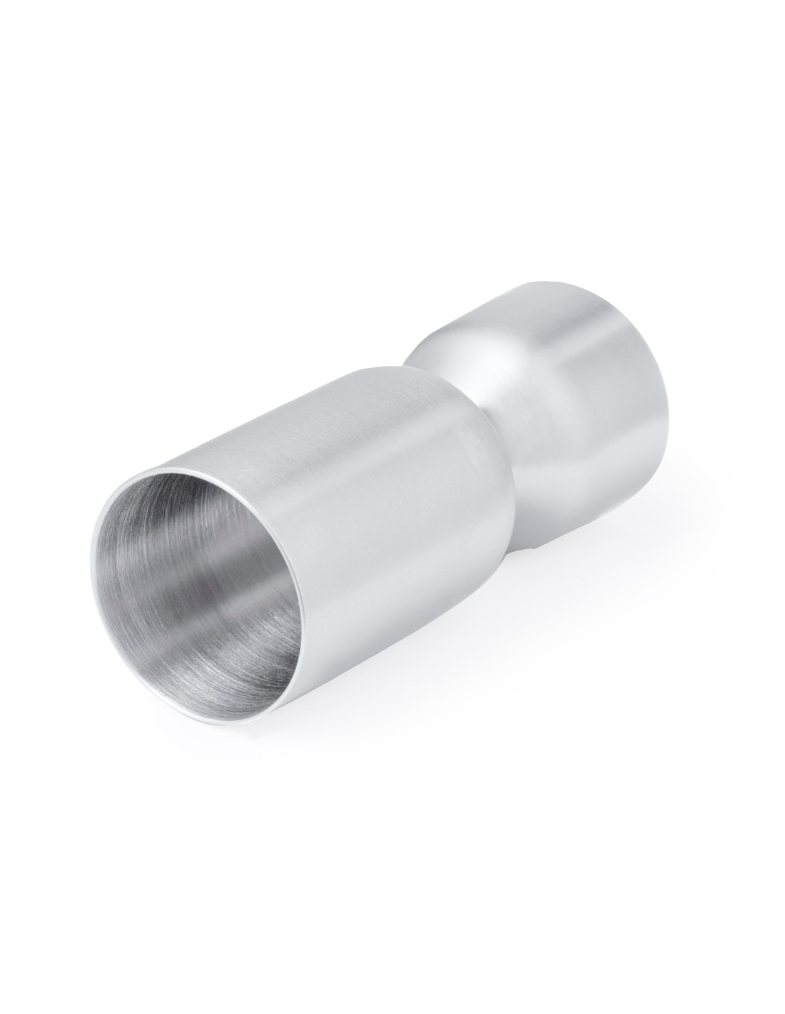 Medidor de bebidas en acero inox de acabado mate. Diseñado especialmente para marcaje en láser y presentado en caja de diseño kraft.