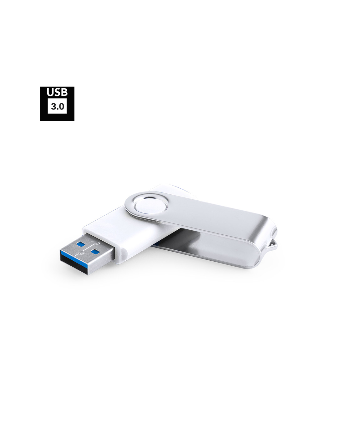 Memoria USB 3.0 de 16GB de capacidad. Con clip metálico y cuerpo de suave acabado en color blanco. Presentada en estuche individual.