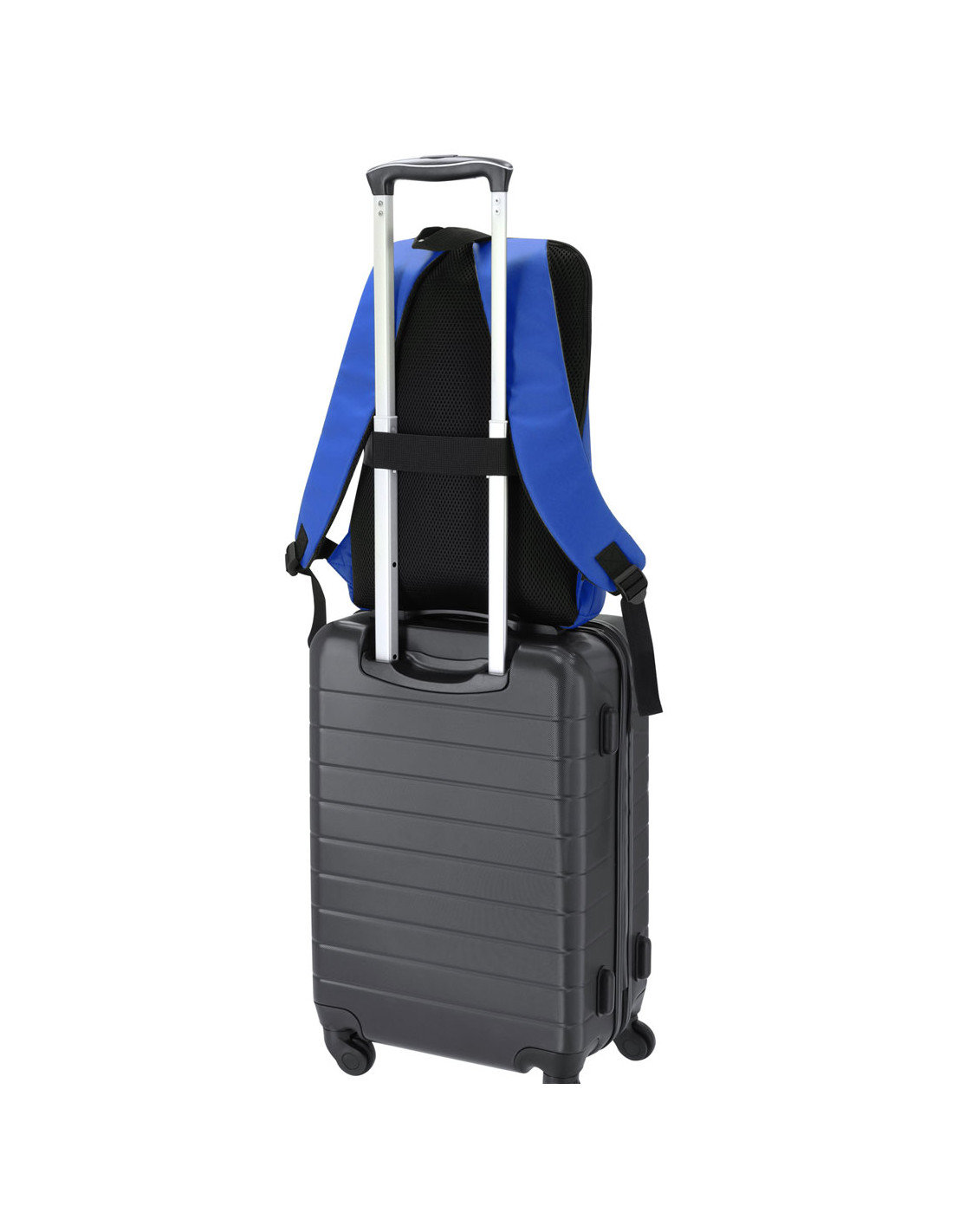 Mochila fabricada en suave PU. Con bolsillo principal de cierre de cremallera con doble tirador. Bolsillo interior para portátil de hasta 15 pulgadas. Incluye dos bolsillos frontales con cierre de cremallera invisble. Espalda y cintas acolchadas, con tela transpirable y ajustables. Incluye cinta de transporte para ajuste en trolley o maleta, ideal para viajes.