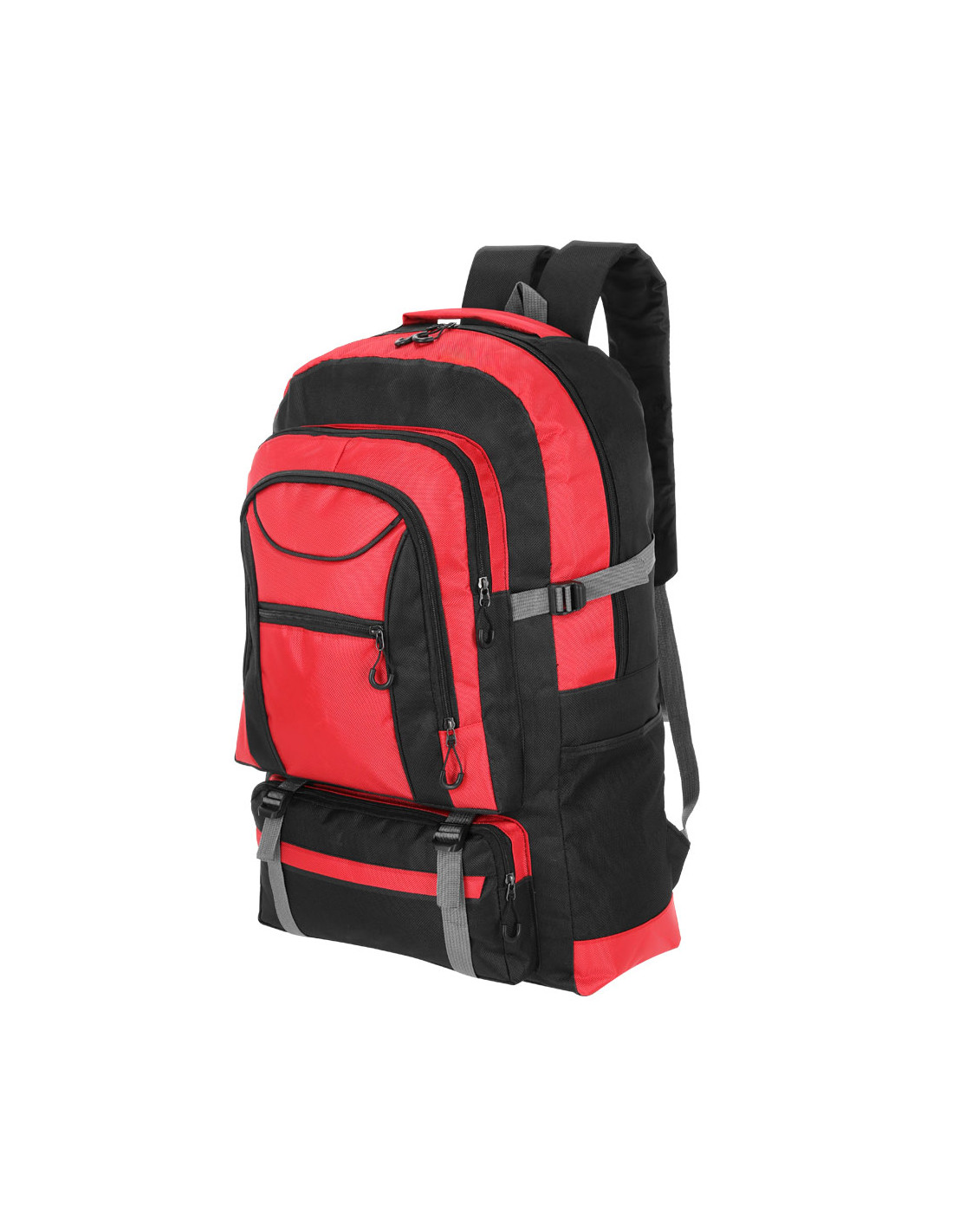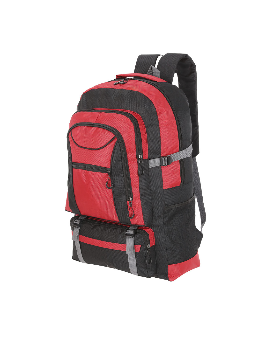 Mochila en resistente poliéster 600D. Con compartimento principal con cierre de cremallera de doble tirador y forro interior, múltiples bolsillos frontales con cierres de cremallera y cómodos tiradores de amplio agarre. Incluye bolsillos laterales de rejilla. Espalda acolchada, cintas de hombro ajustables y acolchadas, así como una correa de cintura ajustable.