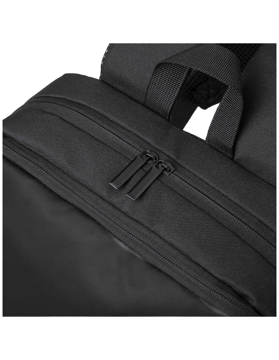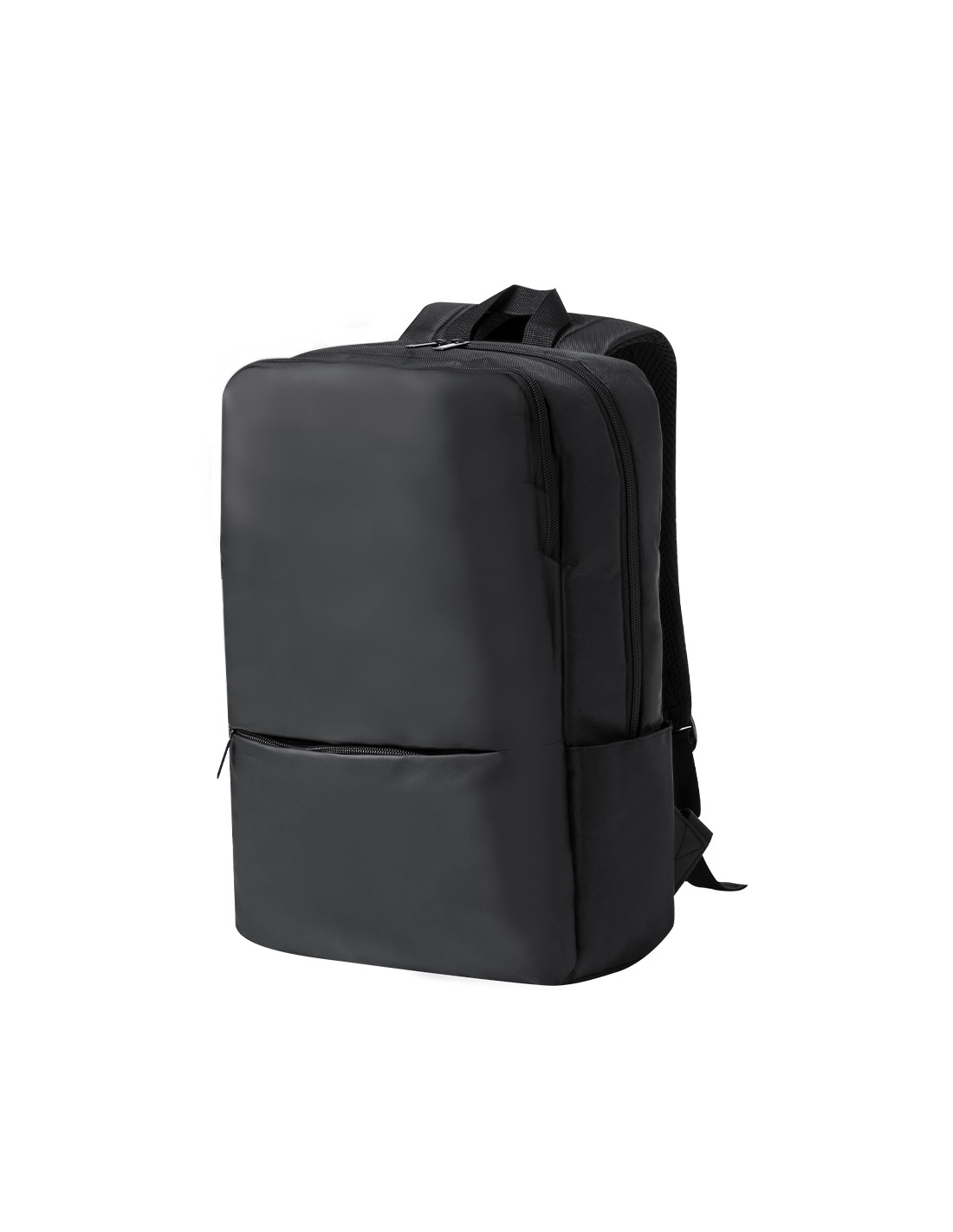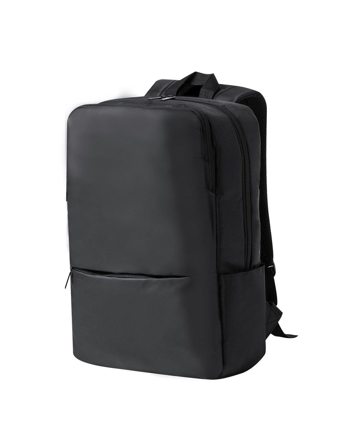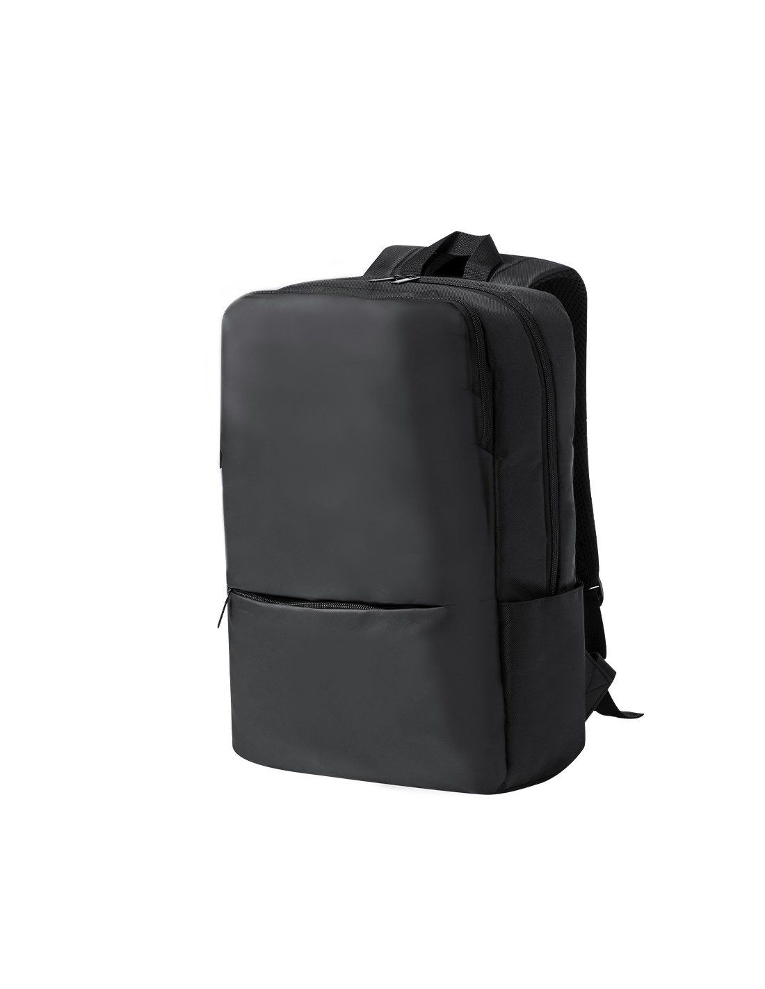 Mochila confeccionada en elegante polipiel De diseño urbano, que incorpora un bolsillo principal acolchado con doble cierre para tablet de hasta 10 pulgadas y portátil de hasta 15 pulgadas, así como un bolsillo segundario y un bolsillo frontal con cremallera. Las cintas de hombros y la espalda son acolchadas, ajustables y cuentan con una tela transpirable para disipar el calor. Además, incluye un accesorio para ajustarse al trolley y una práctica asa en la parte superior. Presentada en una bolsa individual reciclada.