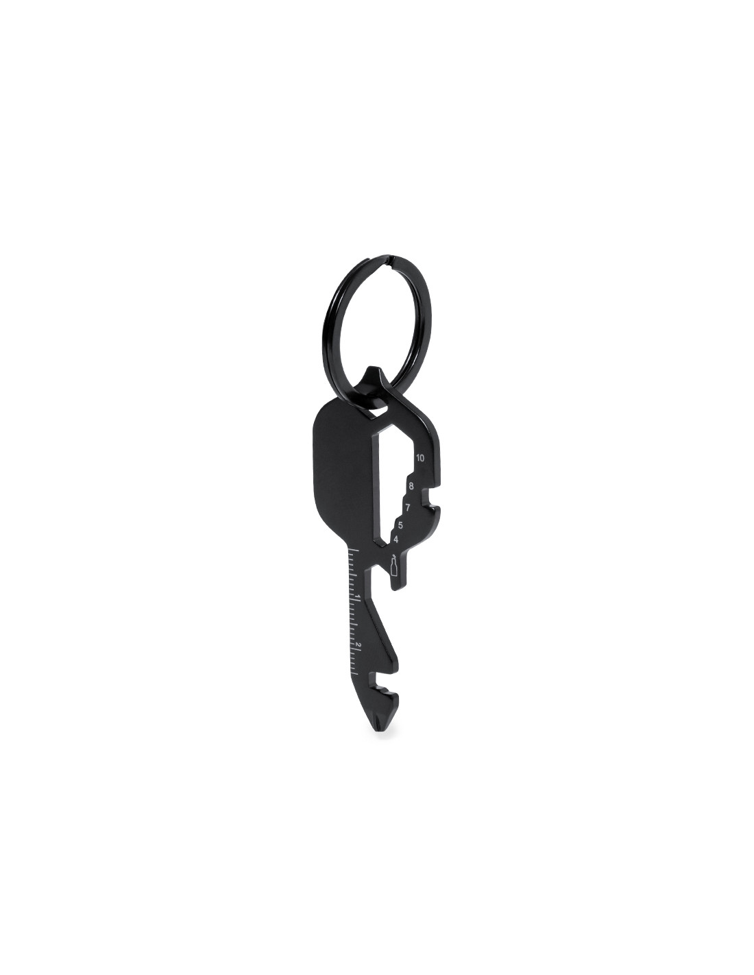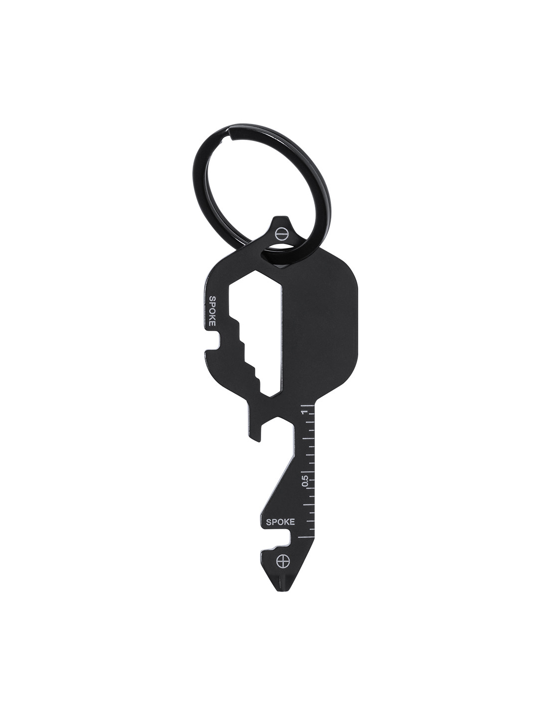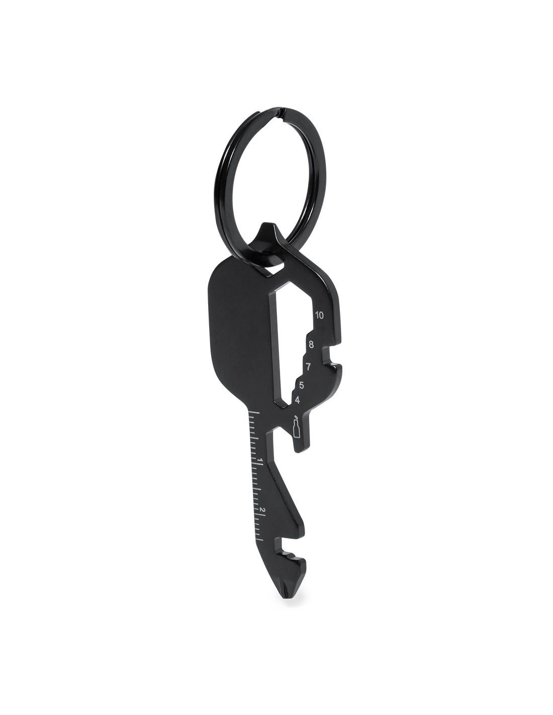 Original y práctica multiherramienta con llavero en acero inox. Con 13 funciones entre otras, destornillador de punta plana y philips, llave para tuercas hexagonales en varios tamaños, regla y abrebotellas. Presentado en sobre de cartón.