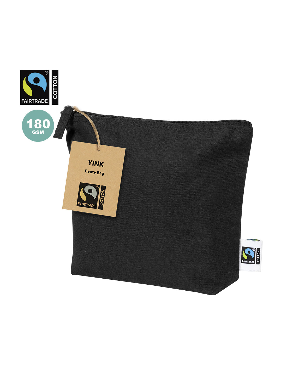 Neceser de línea nature, fabricado en 100% algodón en tono elegante negro. Con certificación Fairtrade (Comercio Justo) un sistema comercial solidario y alternativo al convencional que persigue el desarrollo de los pueblos y la lucha contra la pobreza. Compartimento principal con cierre de cremallera y tirador a juego, incluida etiqueta Fairtrade y etiqueta con logotipo en cartón reciclado.