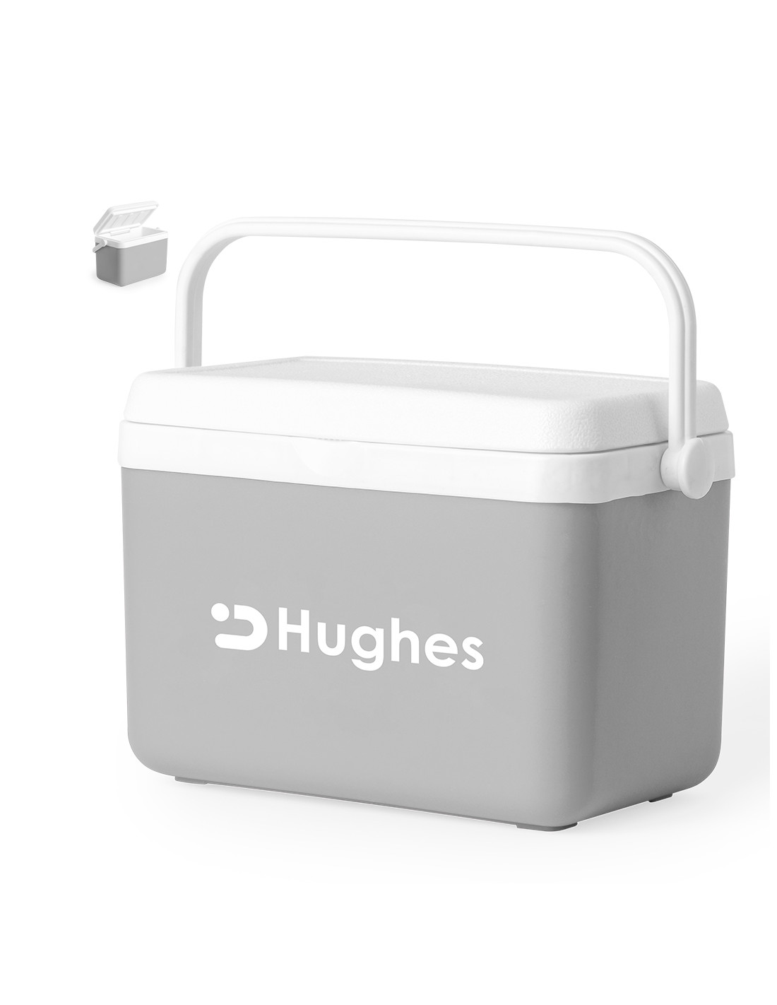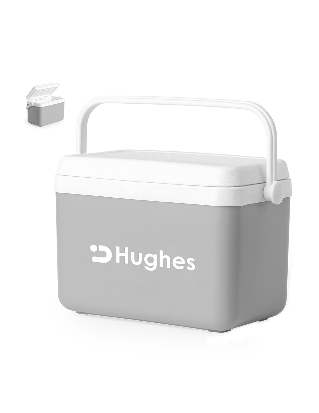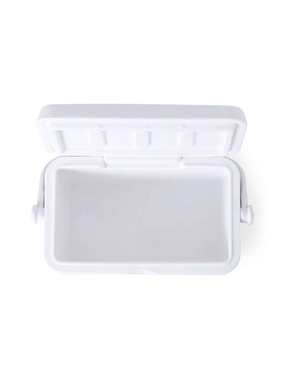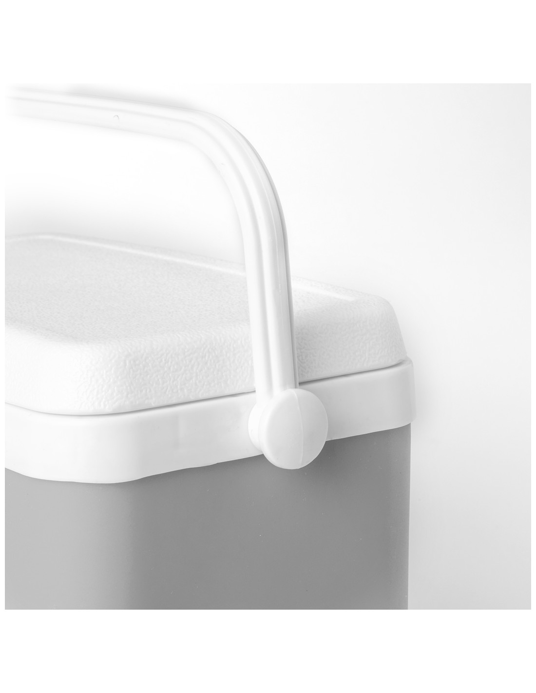 Nevera fabricada en PP de 4L. Atractivo diseño vintage para mantener bebidas y alimentos fríos, de diseño rígido con doble pared. Tapadera de bisagra con cierre de seguridad y asa rígida para un fácil transporte. Con base de color gris y accesorios en blanco. Presentada individualmente en bolsa reciclada.
