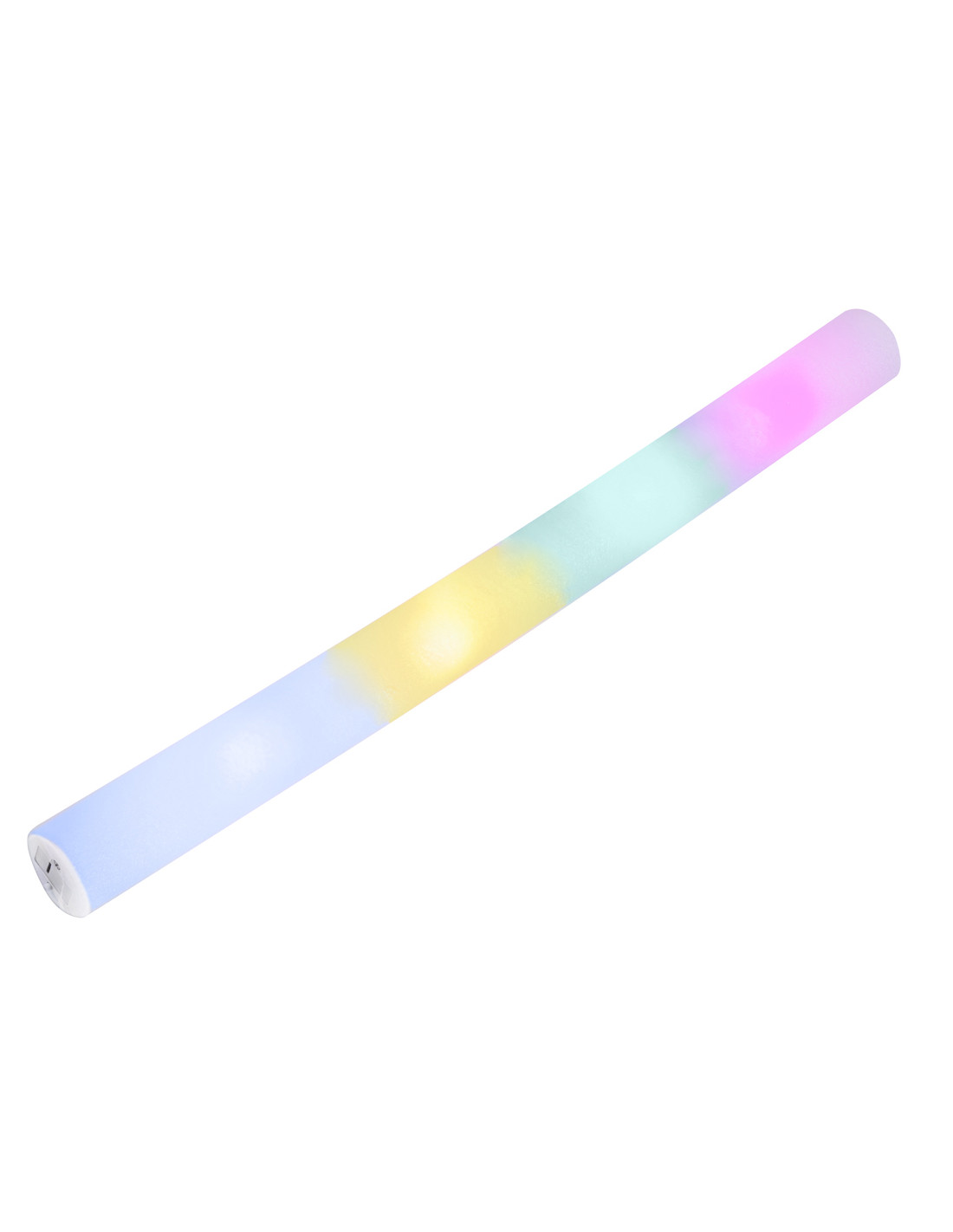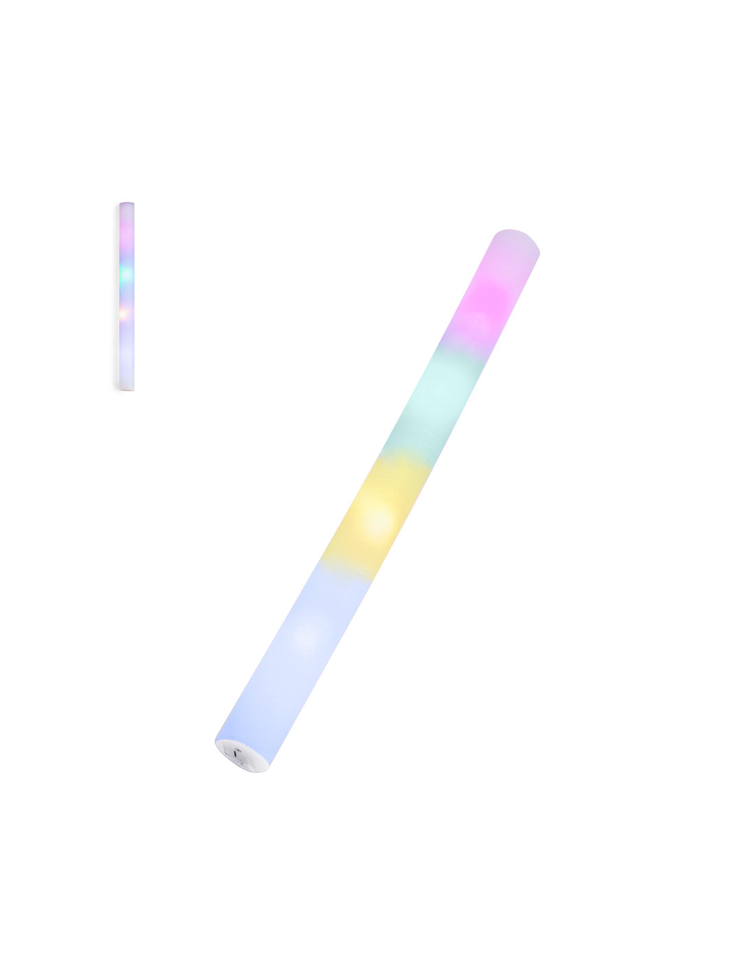 Original barra de luz, iluminada por brillantes LEDs. Fabricada en espuma de tacto suave y agradable, el interior se ilumina gracias a cuatro luces LEDs de variados colores. Alimentada por pilas de botón incluidas, su encendido resulta sencillo mediante un botón en la base con tres posiciones distintas (luz fija, luz intermitente rápida o lenta). Este accesorio es ideal para destacar en cualquier evento. Presentado individualmente en una caja diseño kraft.