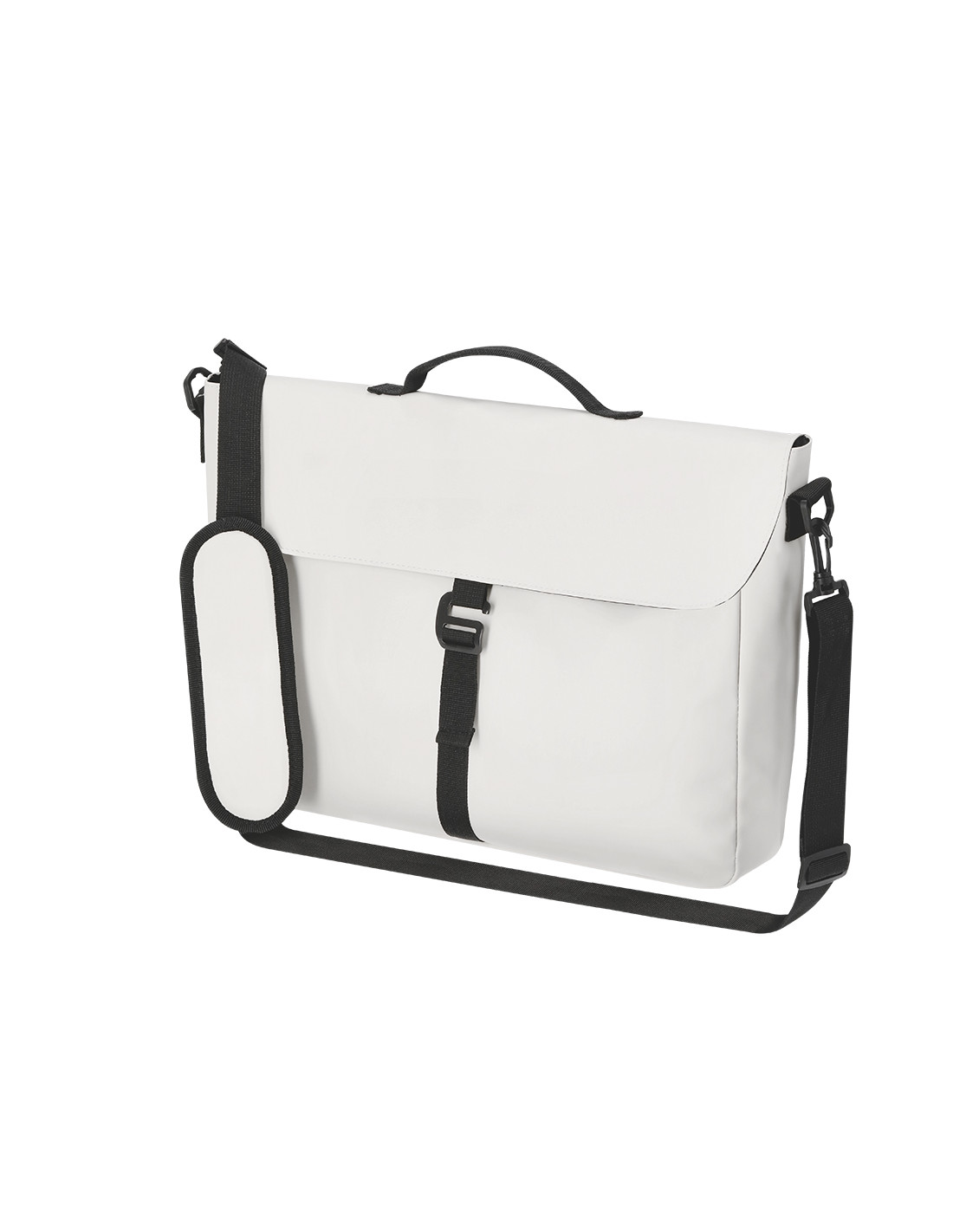 Portadocumentos de suave PU. Interior de gran capacidad con compartimento acolchado para portátiles de hasta 15 pulgadas. Con sistema de cierre de hebilla. Incluye cinta de transporte removible y acolchada.