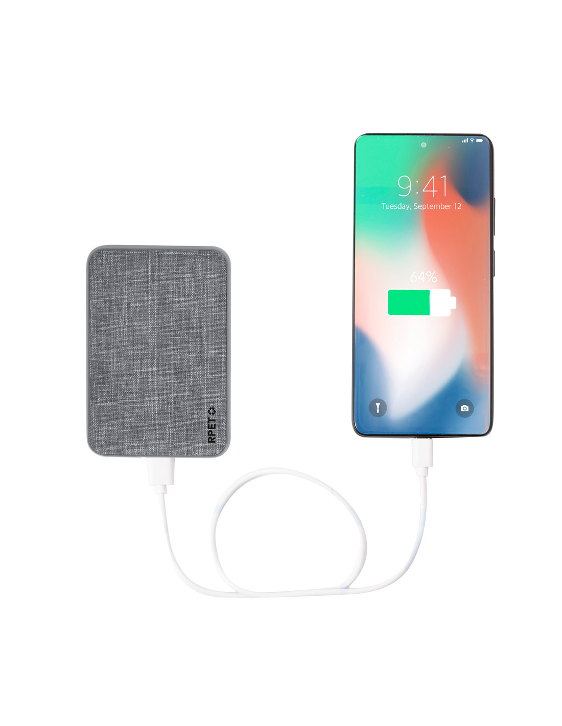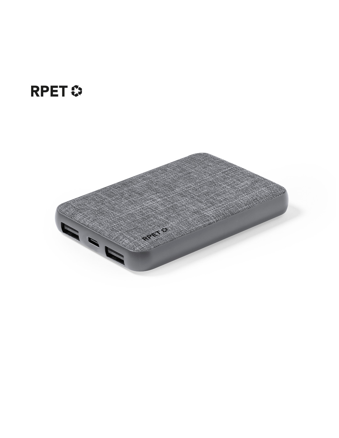 Batería auxiliar externa recubierta de suave poliéster RPET. De 5.000 mAh de capacidad, con conexión de entrada y salida Tipo C + 2 salidas USB. Indicador de estado de carga y cable de carga Micro USB incluido. Con amplia superficie de marcaje y con logotipo RPET. Presentado en atractiva caja de diseño kraft.El material RPET se elabora a partir de plástico reciclado, para así fomentar la reutilización de residuos plásticos y ayudar a la sostenibilidad del planeta.Las capacidades mostradas en todas nuestras baterías auxiliares externas son reales, incorporando todas ellas baterías de grado A y no recicladas, con una vida útil de al menos 500 ciclos de carga y según normativa CE.Además, están fabricadas conforme a los estándares RoHS y en cumplimiento con los siguientes requisitos de seguridad:Sistema de protección contra sobrecarga del power bank.Sistema de protección con