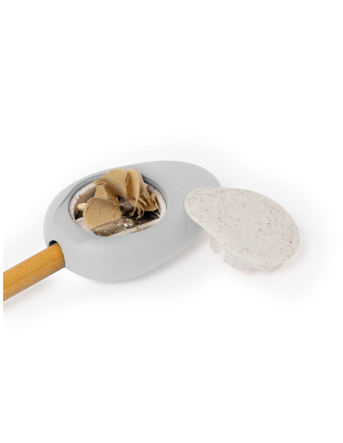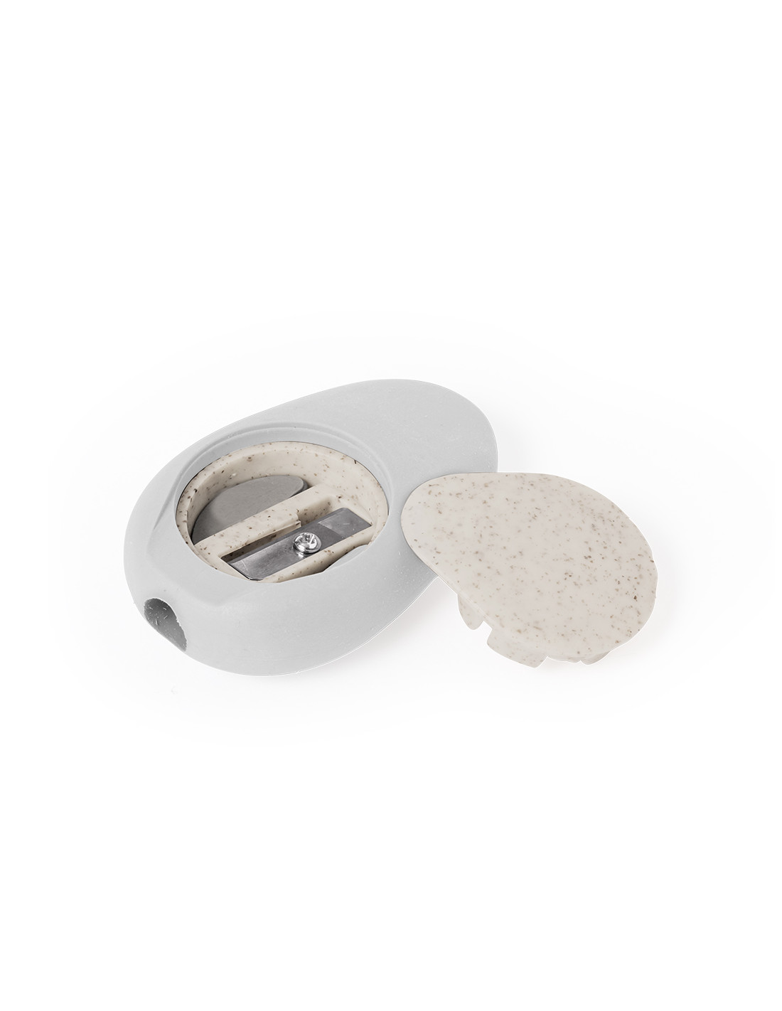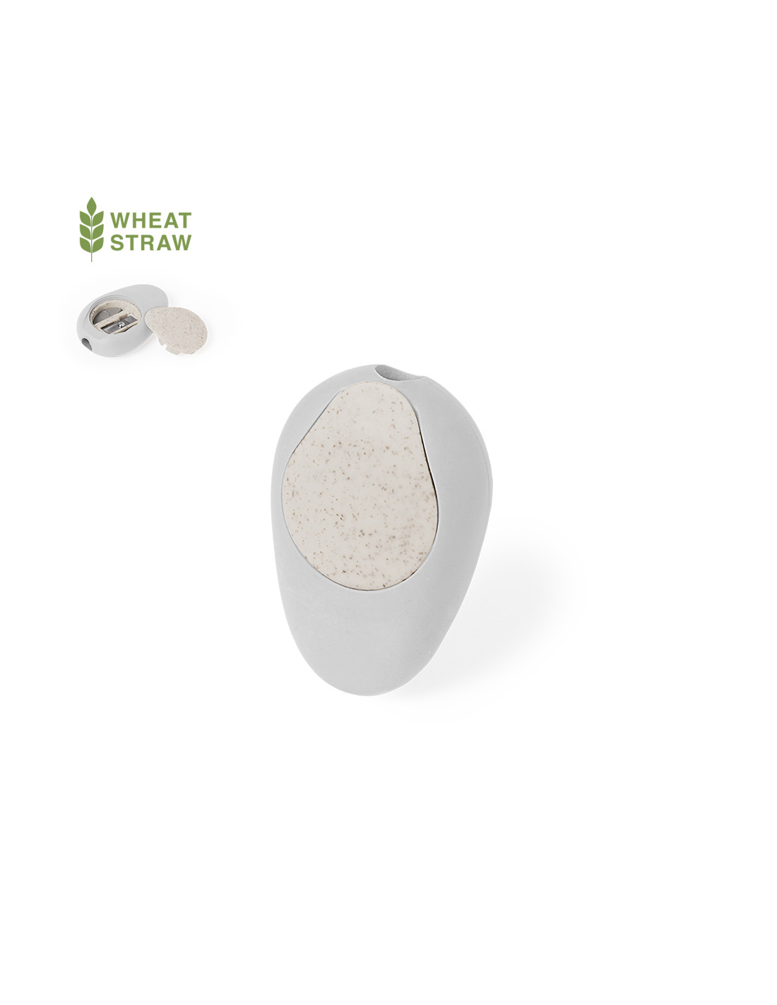 Original sacapuntas fabricado en caña de trigo. Práctico sacapuntas de bolsillo de inspiración natural por su forma de piedra pulida con práctica tapadera fabricada en fibra de trigo, cómodo de usar y guardar. La caña de trigo fomenta la utilización de materias primas naturales, reduciendo así las emisiones contaminantes.