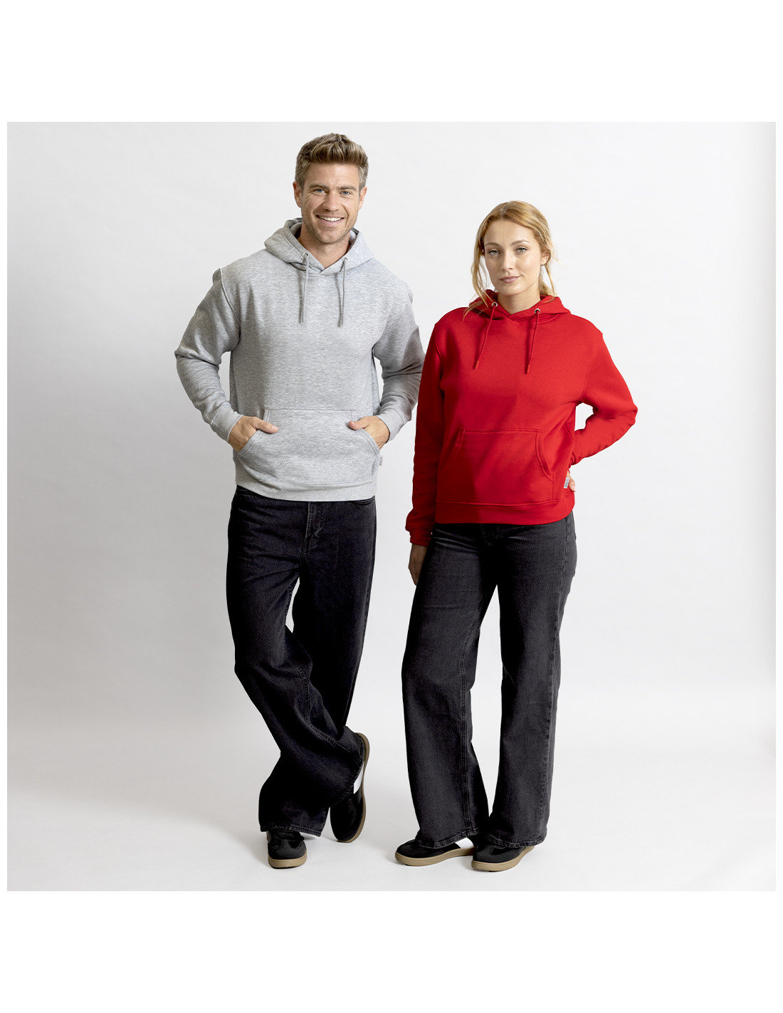 Sudadera con capucha Unisex de Algodón Orgánico y Poliéster Reciclado, en suave felpa perchada de 280 g/m2. Con capucha forrada de doble capa, cordones redondos ajustables -con topes a juego- y ojales metálicos. Puños y cintura de punto canalé de elastano y bolsillo frontal tipo canguro. Cubrecosturas reforzado en cuello, con etiqueta distintiva eco.