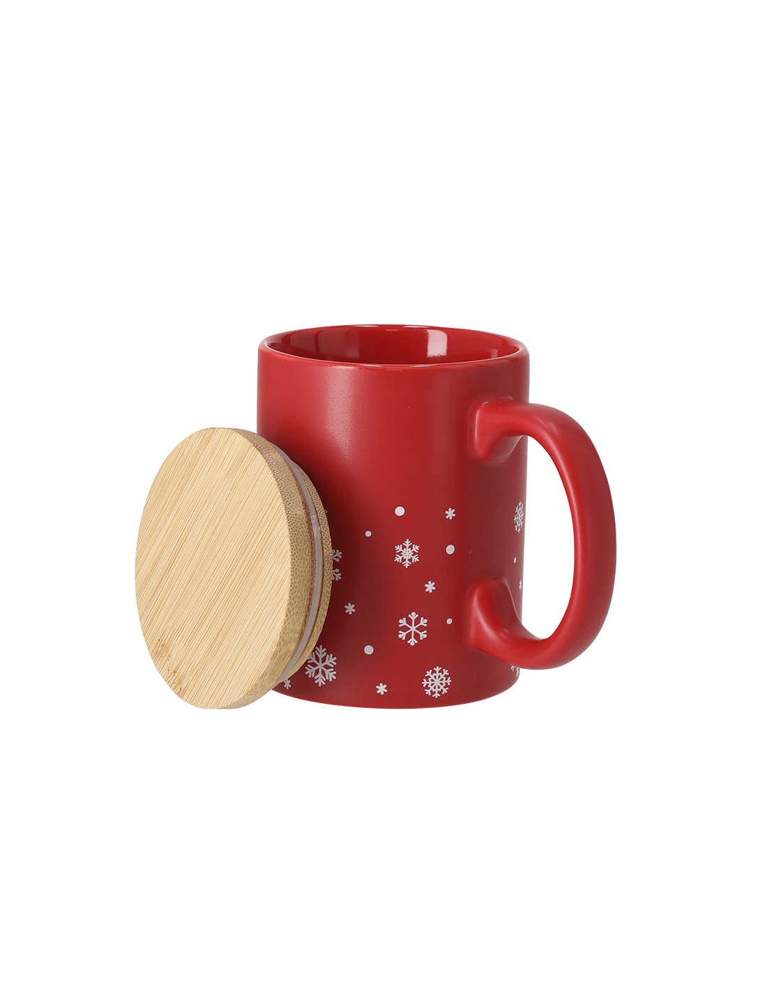 Taza de cerámica con 300 ml de capacidad. Distinguido diseño navideño con copos de nieve, disponible en dos combinaciones de rojo y blanco mate. Incluye tapadera fabricada en suave bambú. Materiales como el bambú fomentan la utilización de materias primas naturales reduciendo las emisiones contaminantes. Además, el bambú proviene de una planta de gran resistencia y versatilidad, con crecimiento y regeneración rápida, siendo una excelente alternativa al uso de madera tradicional.