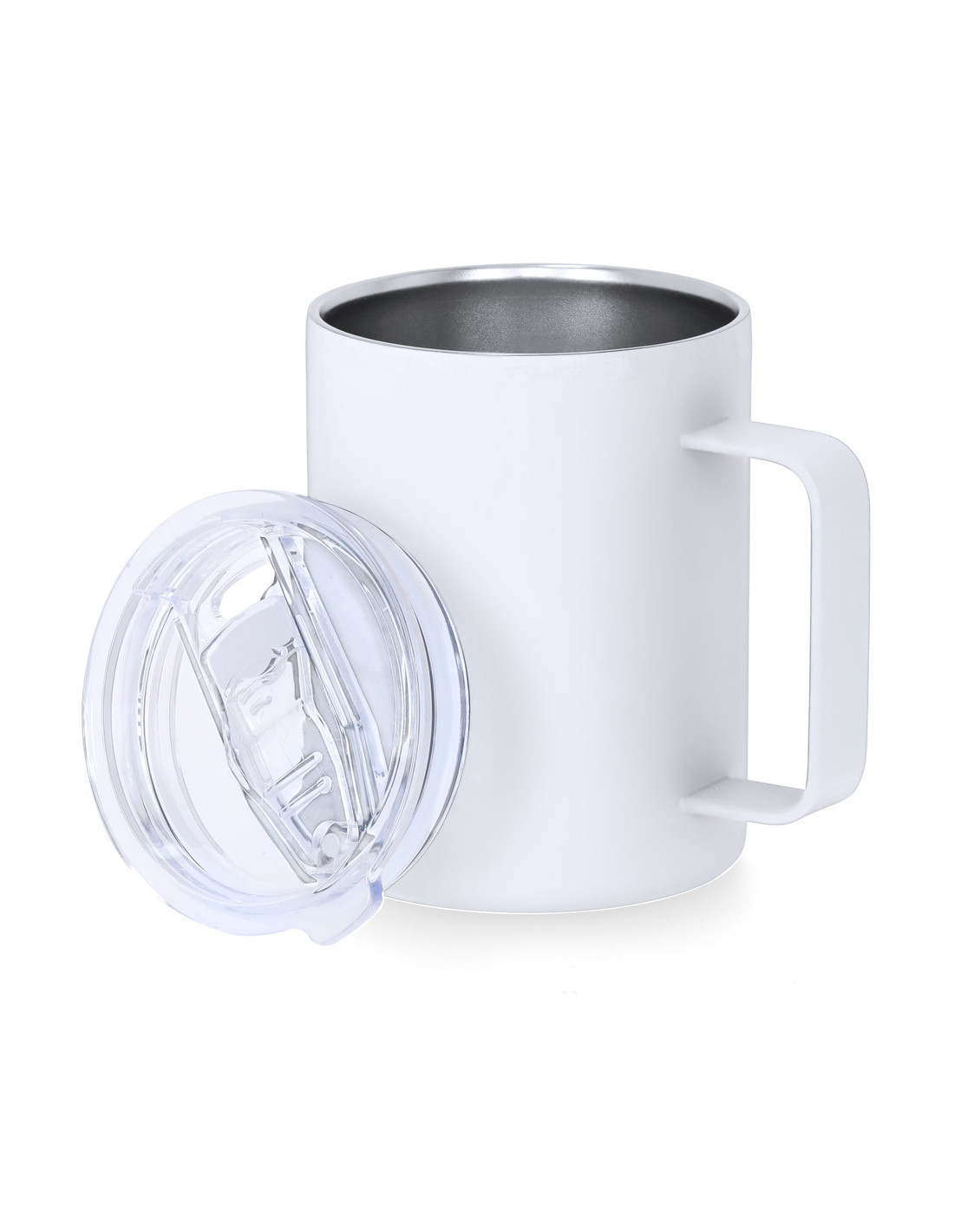 Taza térmica fabricada en acero inox de doble pared y 400 ml de capacidad. Exterior en acabado caucho, especialmente diseñada para marcaje láser. Incluye tapa de cierre a presión transparente, con dosificador de fácil apertura, libre de BPA.
