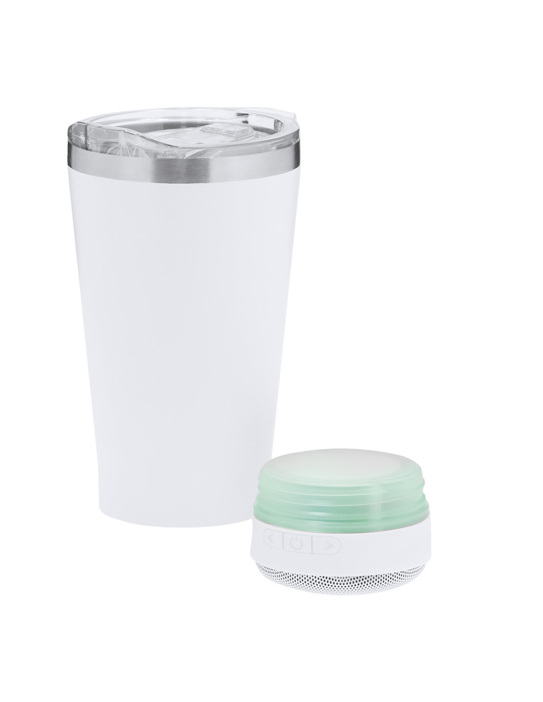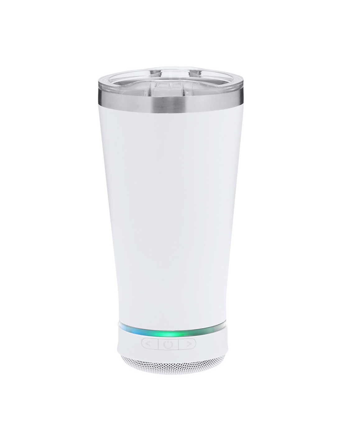 Vaso Térmico con Altavoz Bluetooth 5.3 de 3W integrado. Con 440 ml de capacidad y fabricado en acero inoxidable de doble pared, asegurando una durabilidad máxima y un excelente mantenimiento de la temperatura de las bebidas, ya sean frías o calientes. Es ideal para tener en tu escritorio, mesa o en cualquier superficie donde disfrutar tranquilamente de tu bebida favorita. Con dosificador en tapadera y abre fácil, libre de BPA. Cuenta con base antideslizante a juego, que proporciona una mayor estabilidad. El altavoz Bluetooth integrado en la base del vaso es fácilmente extraíble gracias a su sistema de rosca, e incluye iluminación inteligente LED RGB, que se sincroniza al ritmo de la música, creando una experiencia visual y auditiva única. Además, la función manos libres permite atender llamadas sin necesidad de dejar lo que se está haciendo.