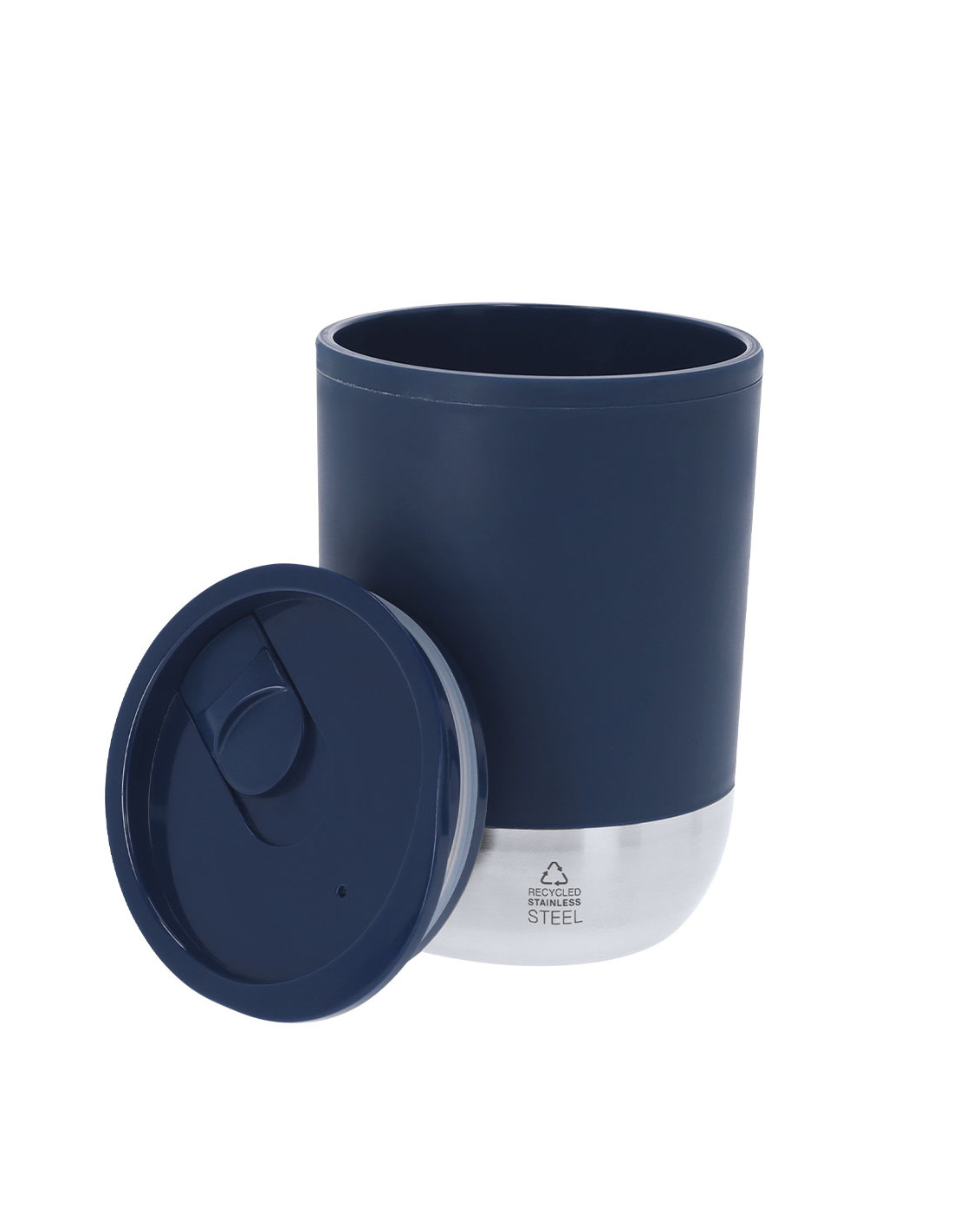 Vaso térmico de 290 ml de capacidad. Fabricado en resistente PP Reciclado de doble pared en combinación con base en Acero Inox Reciclado. Tapa con dosificador de fácil apertura, libre de BPA. Es ideal para tener en tu escritorio, mesa o en cualquier superficie donde disfrutar tranquilamente de tu bebida favorita. Con certificación Food Grade, garantizando la seguridad cuando los alimentos entran en contacto con el material usado para fabricar el producto. Con distintivo de Acero Inox Reciclado. El PP reciclado es un plástico reciclado y altamente reciclable, de gran resistencia y apto para multitud de aplicaciones.El acero es uno de los materiales más demandados y que puede encontrarse casi en todas partes, desde productos de uso diario a grandes construcciones. Con innumerables propiedades, entre las que cabe destacar la durabilidad y su alto grado de reutilización, convirtiéndo