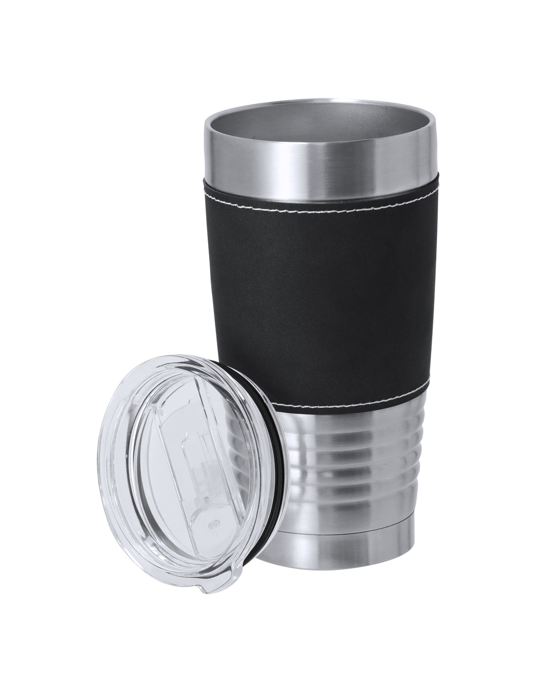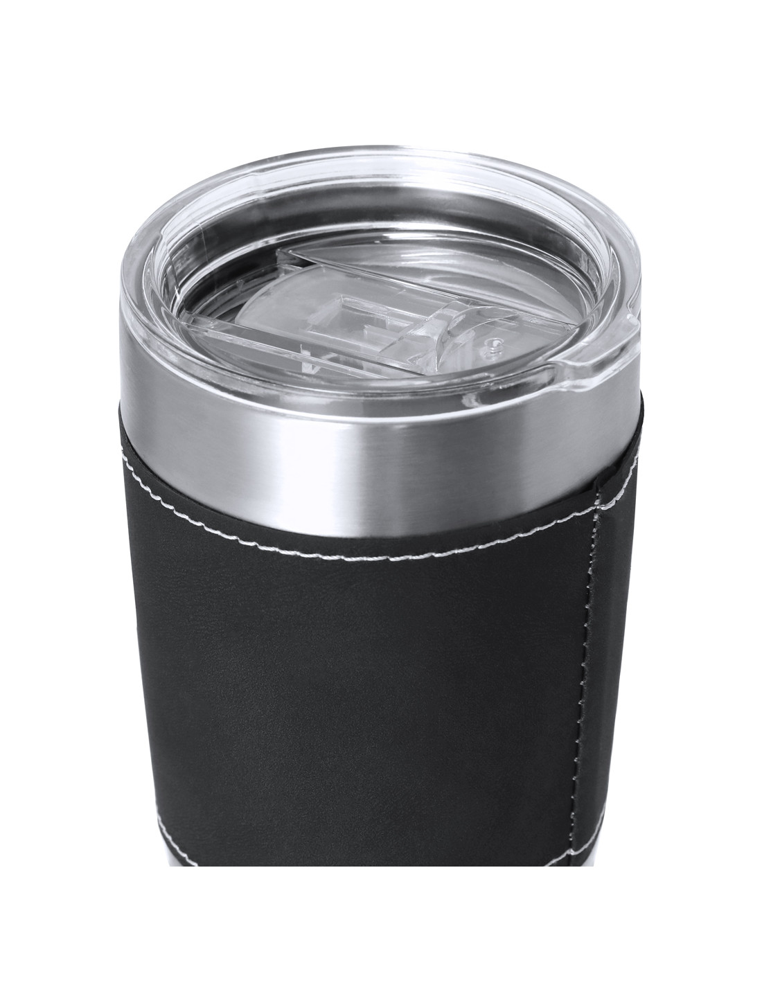 Vaso térmico fabricado en acero inox de doble pared y sofisticada PU. Con 420 ml de capacidad. Incluye elegante banda de PU, confeccionado con distinguidas puntadas blancas. Es ideal para tener en tu escritorio, mesa o en cualquier superficie donde disfrutar tranquilamente de tu bebida favorita. Incluye tapadera transparente con dosificador en tapa y de fácil apertura, libre de BPA.